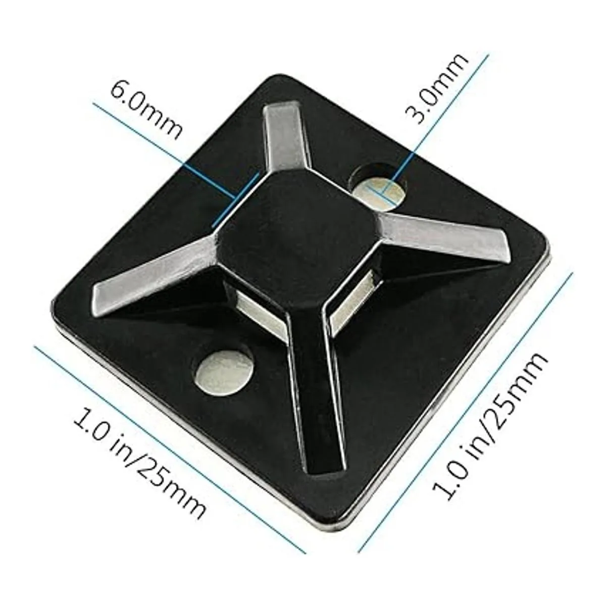 Tamaño: 1 x 1 pulgada, tamaño del agujero para bridas de cables: 1/4 pulgadas