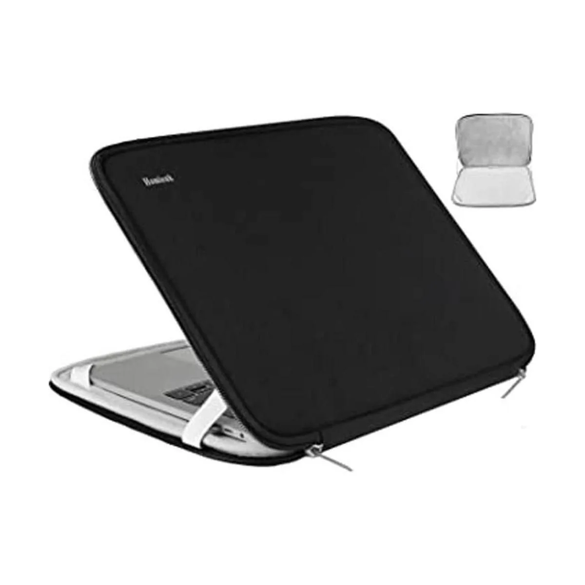 Material de alta calidad: cuenta con una capa acolchada de espuma de poliéster y forro polar esponjoso, la capa exterior de tela protege contra el polvo, la suciedad, los desechos y los arañazos. El diseño acolchado de la funda de transporte para computadora ofrece protección contra golpes, sacudidas y extrusión cuando se coloca en la mochila o maleta.