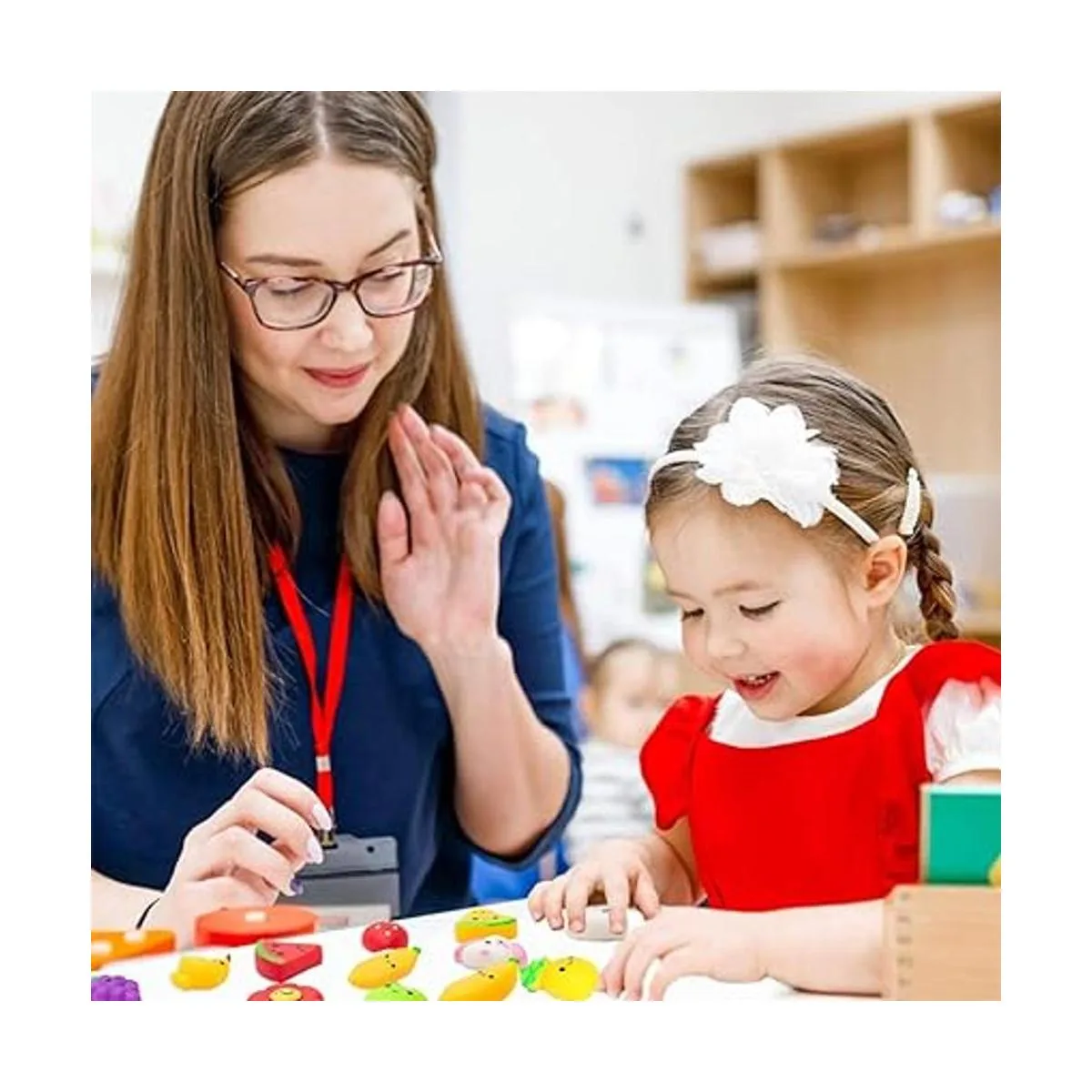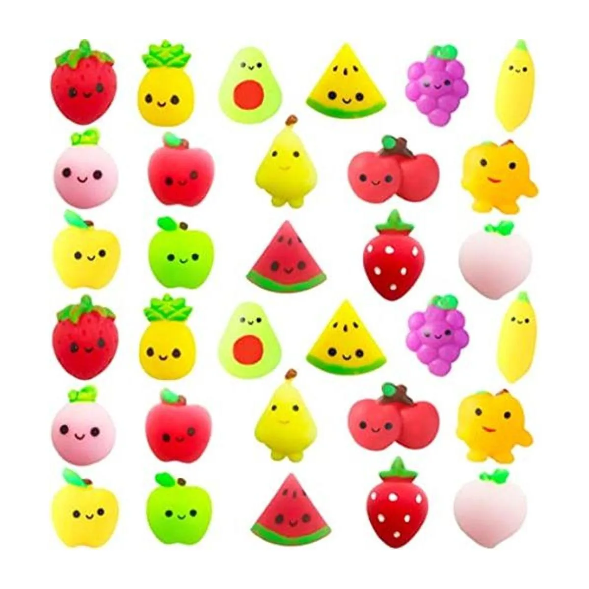 El paquete incluye: 32 juguetes esponjosos de frutas Mochi. Incluye sandía, manzana, cereza, piña, pera, uva, melocotón, etc. Todos son de buen tamaño para adaptarse a las manos pequeñas de los niños.