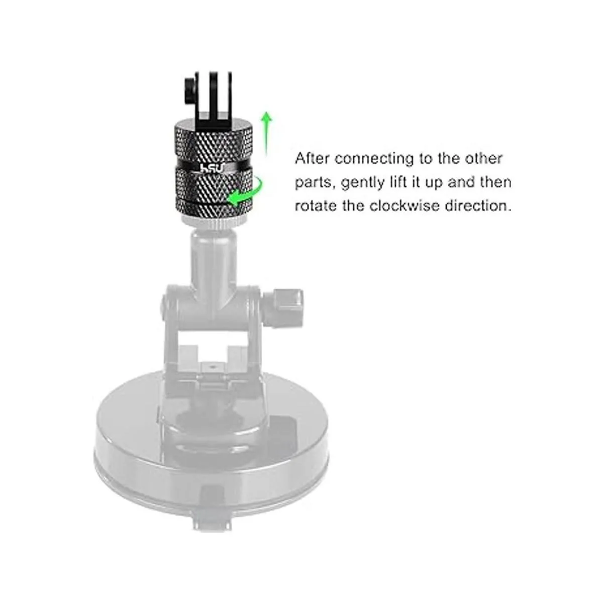Se adapta a las cámaras deportivas estándar con una rosca estándar de 1/4 pulgadas de 20. Permite que la cámara estándar o cámara de acción se conecte fácilmente a cualquier soporte o accesorio de cámara Go Pro