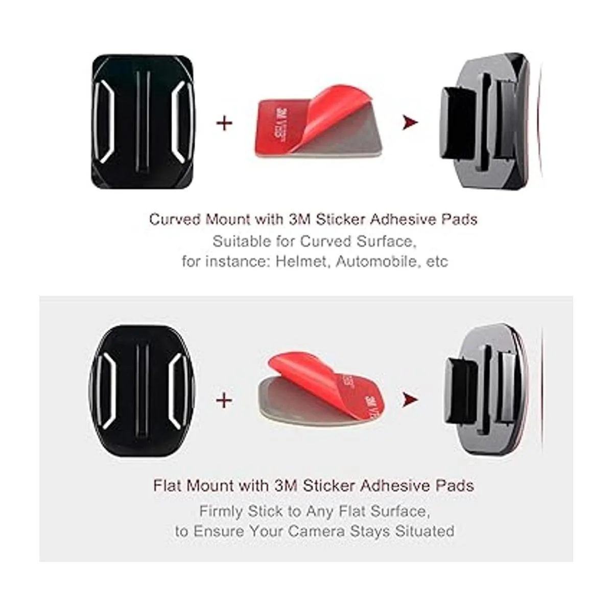 HSU Soportes adhesivos para casco de montaje adhesivo plano curvado 3M compatible con GoPro Hero 10, 9, 8, 7, Max, Fusion, 6, 5, 4, Session, 3, 3, 2, 1 y otras cámaras de acción paquete de 8