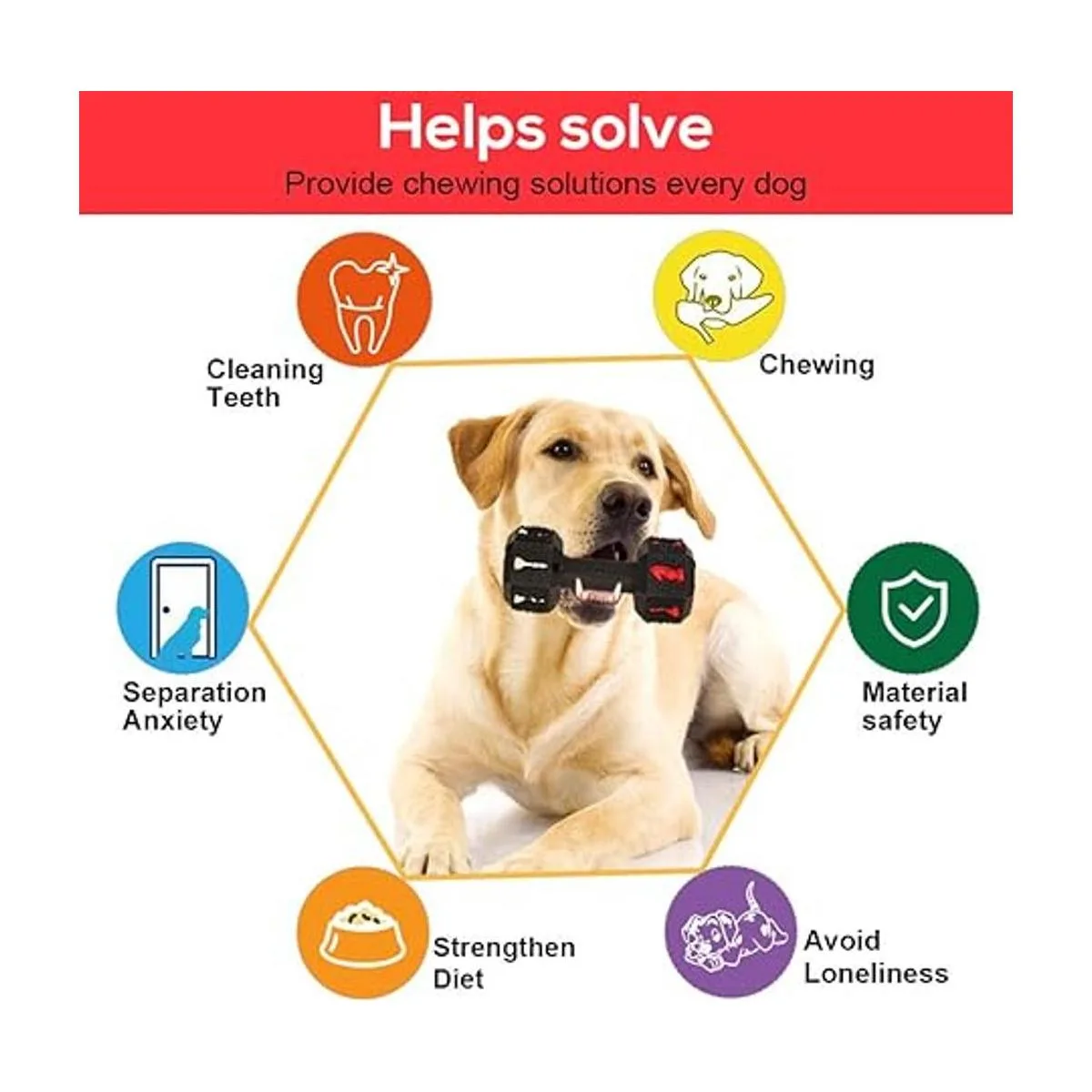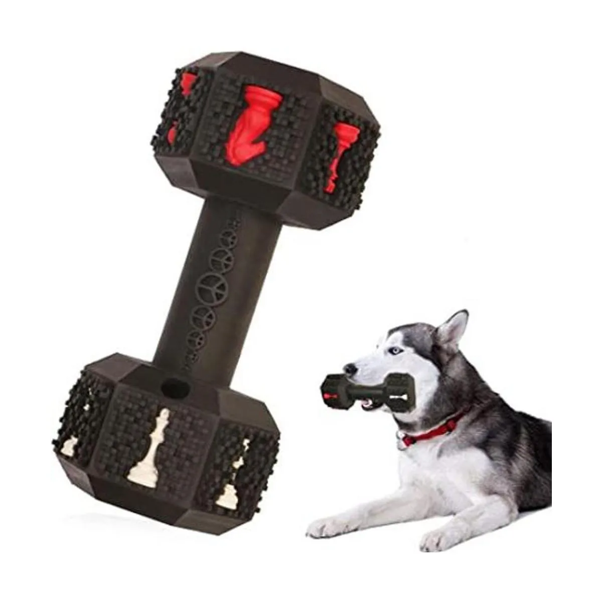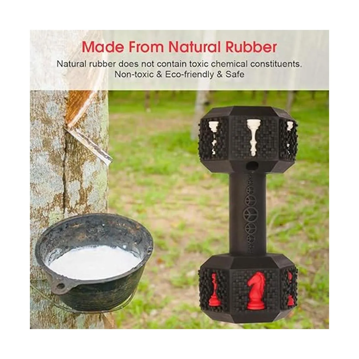 Segura y de alta durabilidad: esta está hecha de caucho natural ecológico y se produce con una exclusiva técnica industrial, esta mancuerna puede soportar 550 libras de tracción a máquina, la durabilidad ha sido aprobada por Alaskan Golden Retriever, pastor alemán, labrador y muchos otros perros masticadores grandes agresivos