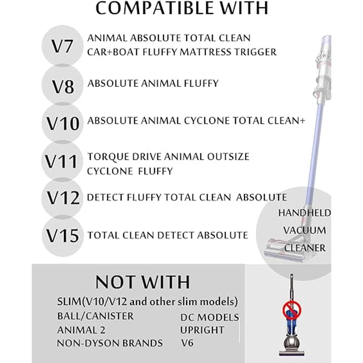Compatible con Dyson V15 V11 V10 V8 V7: se adapta a Dyson V15 Detect V12 Detect V11 Outsize V11, V10 ciclón, V11 V10 V8 V7 absoluto animal motorhead coche y accesorios de aspiradora de barco.