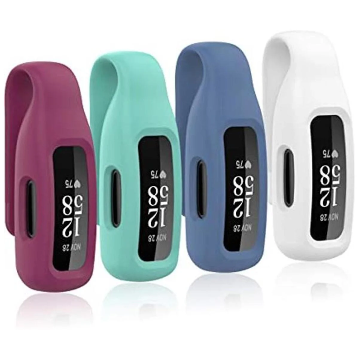 Huadea Paquete de 4 fundas de clip compatibles con Fitbit Inspire 2Fitbit Inspire 3, accesorio de cierre de clip de silicona suave de repuesto para Fitbit Inspire 2Inspire 3 blancorojo vinoverde azuladopizarra