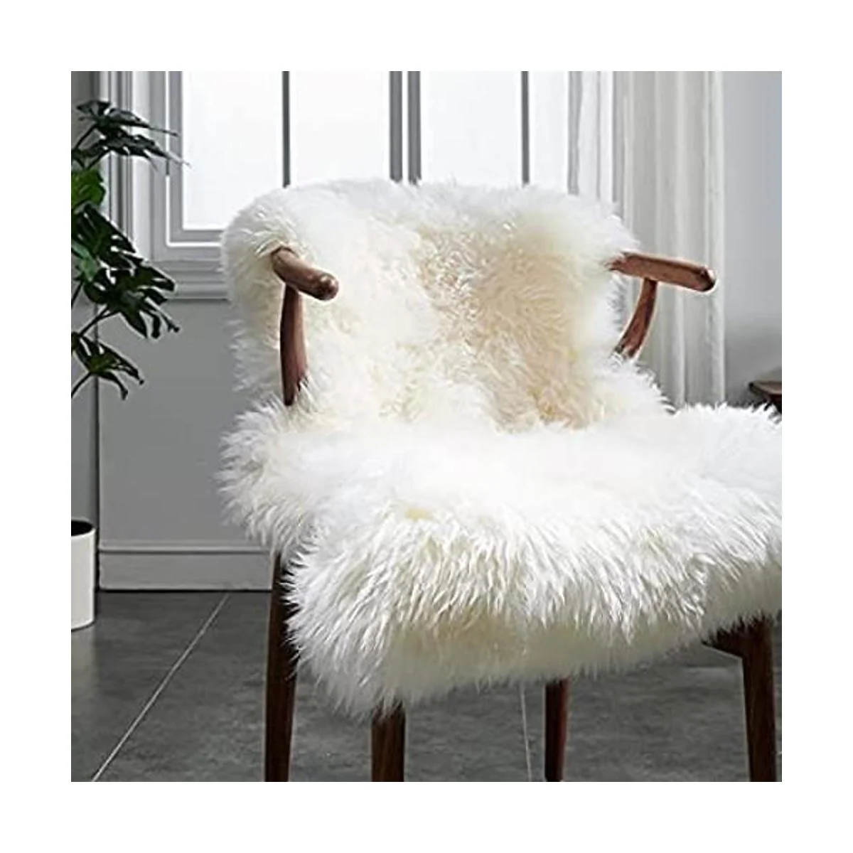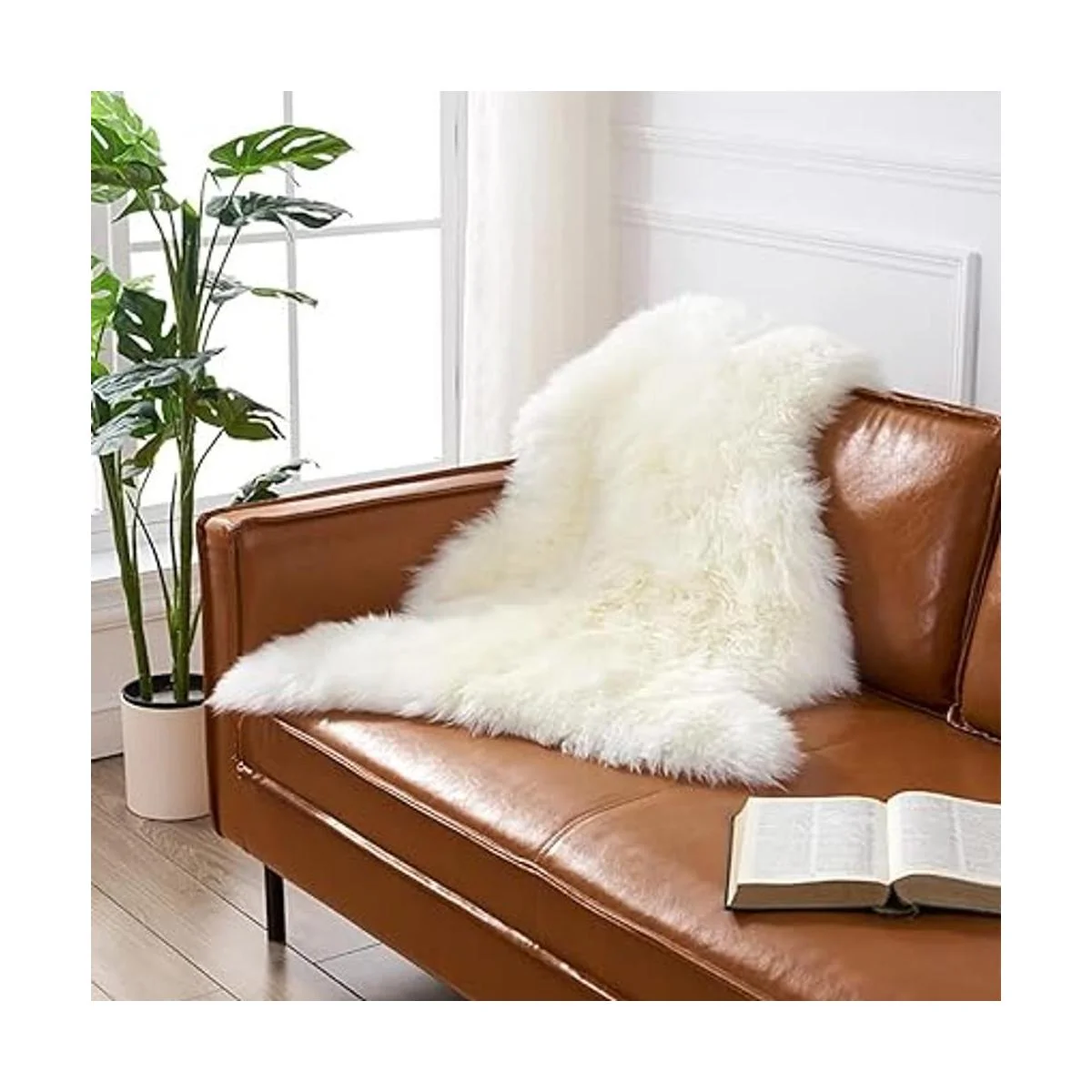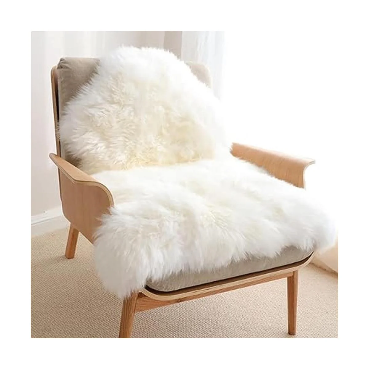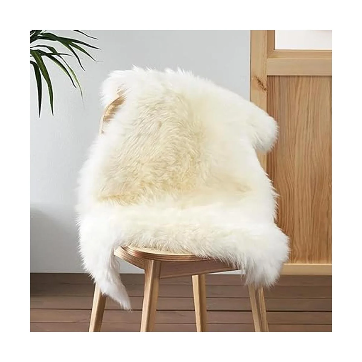 HUAHOO Alfombra de piel de oveja auténtica de alta calidad, de piel de oveja de Australia, de lujo, esponjosa, de piel de cordero, fundas de asiento para dormitorio de niños, funda de silla, mascotas, alfombrilla de piel individual, 2 x 3 pies, color blanco y marfil