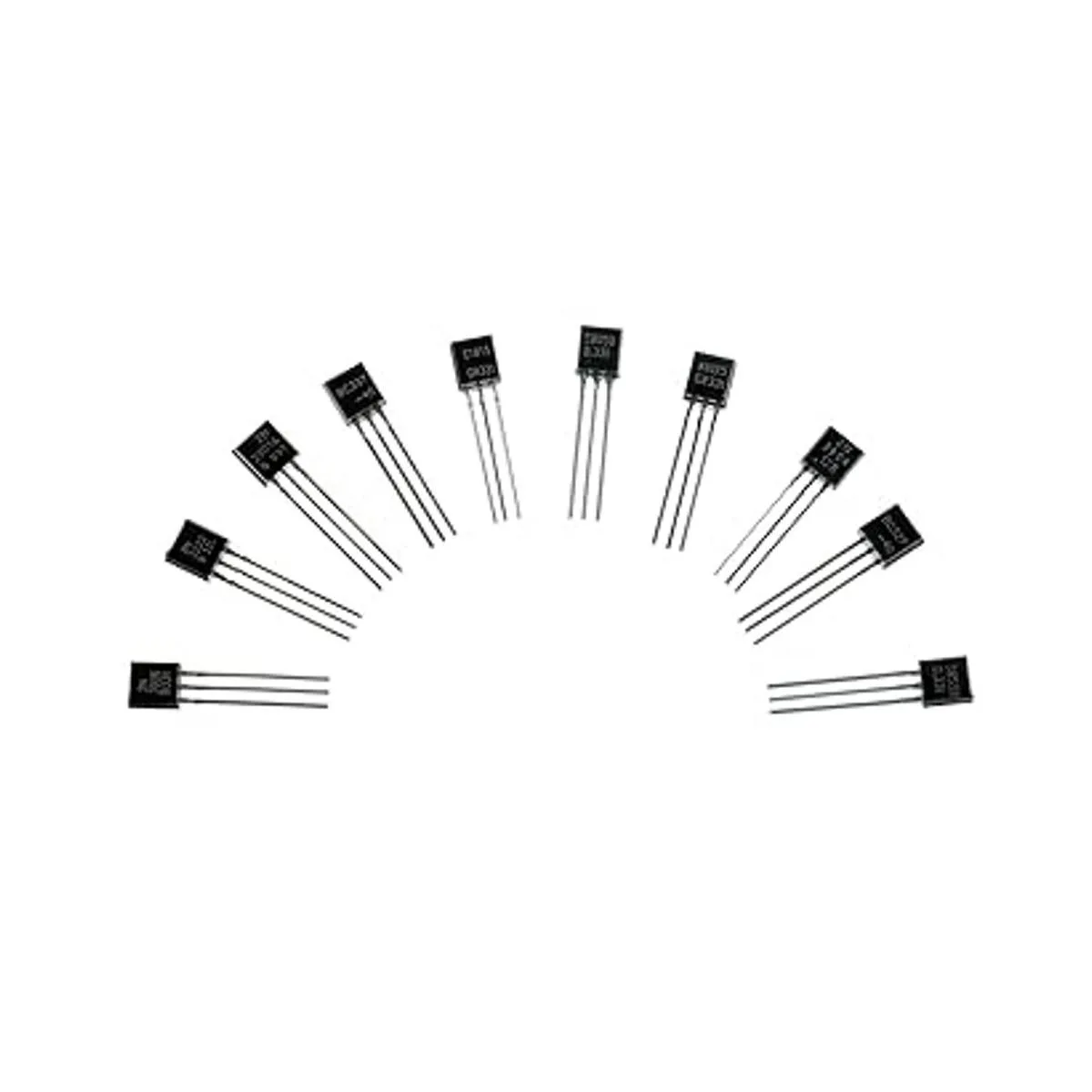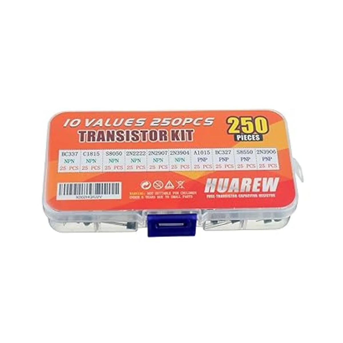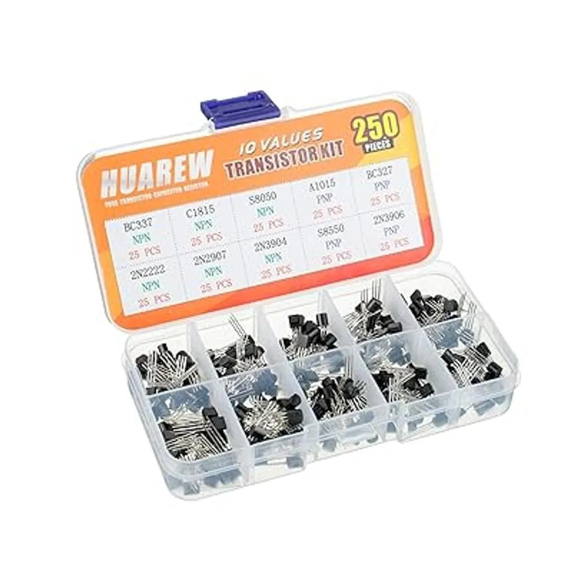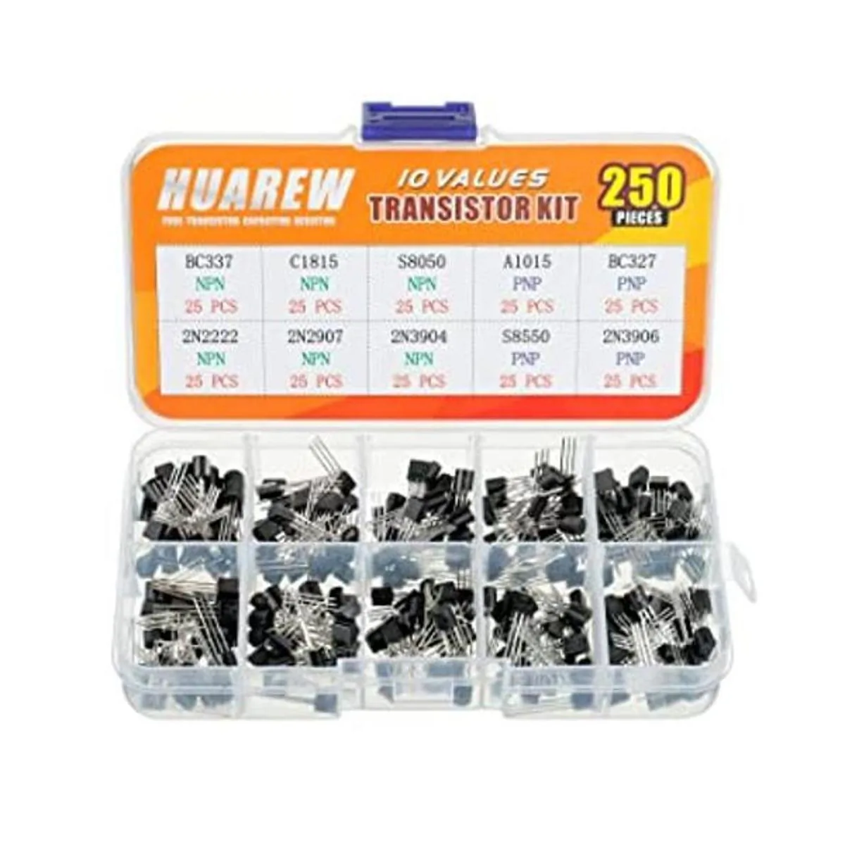 HUAREW 10 valores 250 unidades Transistores NPN BC337 C1815 S8050 2N2222 2N2907 2N3904 PNP A1015 BC327 S8550 2N3906 BJT Kit surtido de transistor de unión bipolar