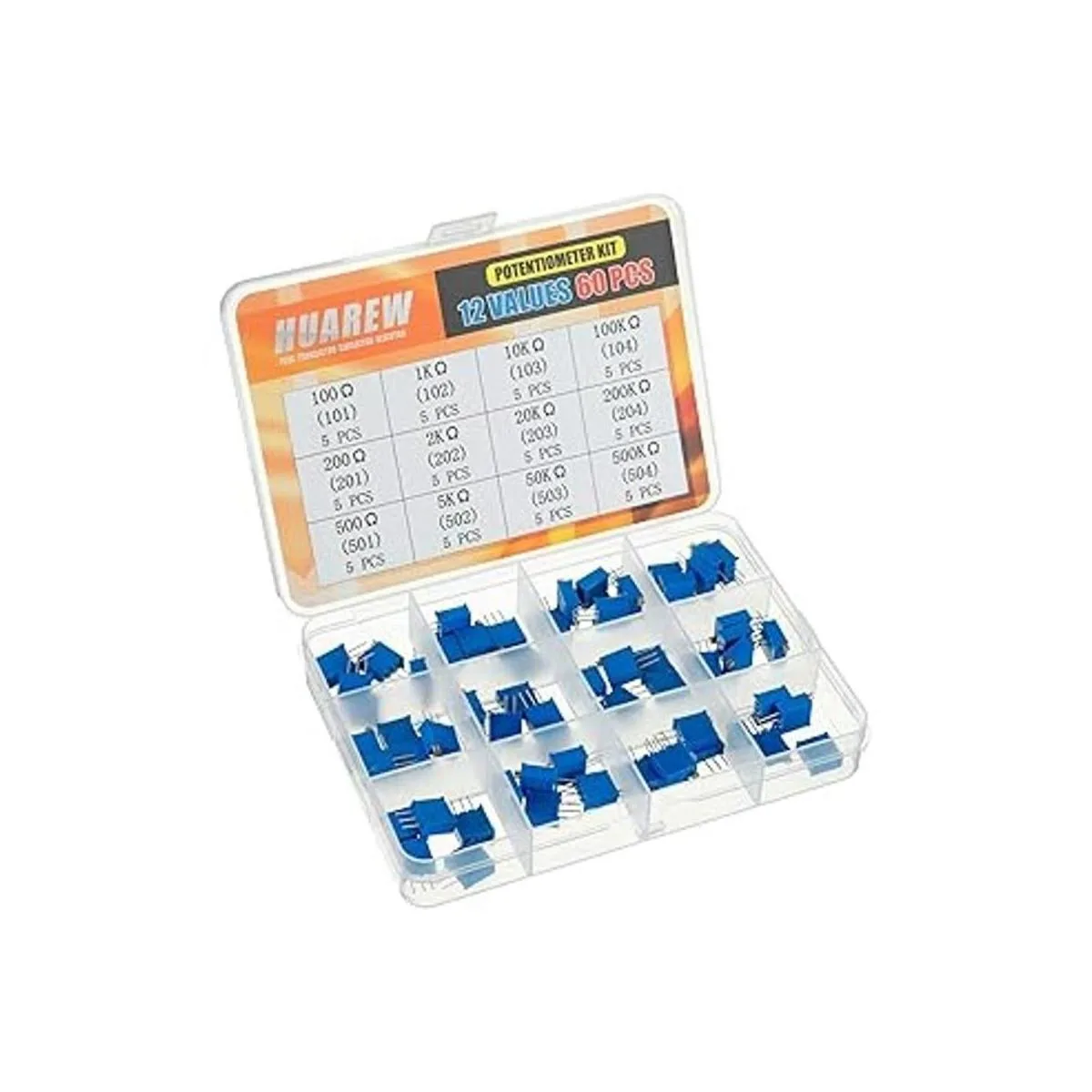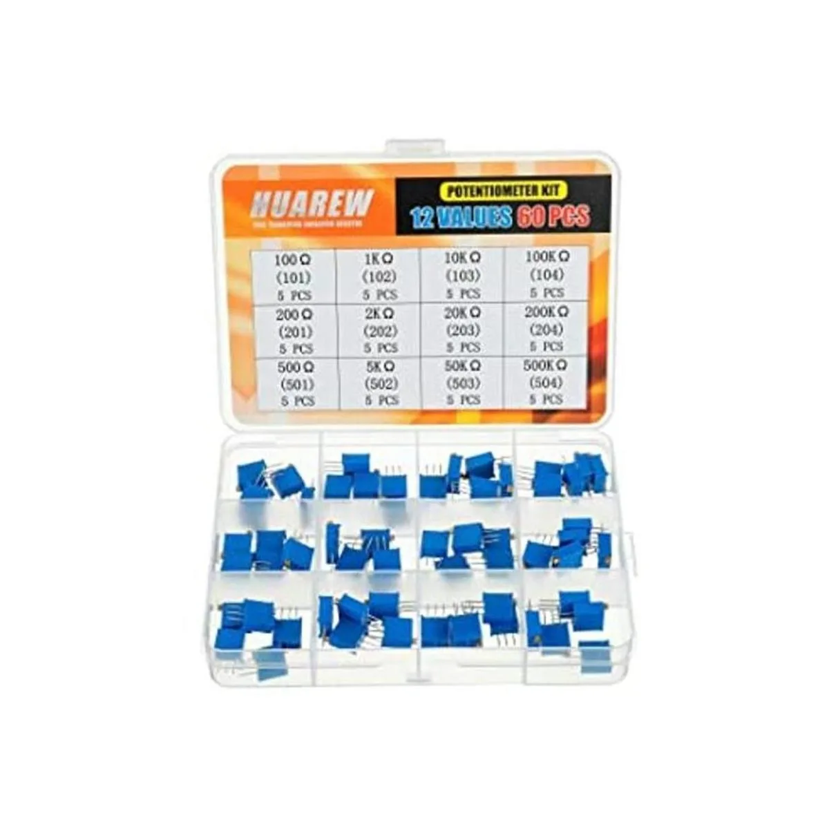 HUAREW 12 valores 60 piezas 3296W Multiturn Trimmer Potenciómetro 100500 K Ohm Azul 3296 Top Ajuste Variable Resistencia Surtido Kit