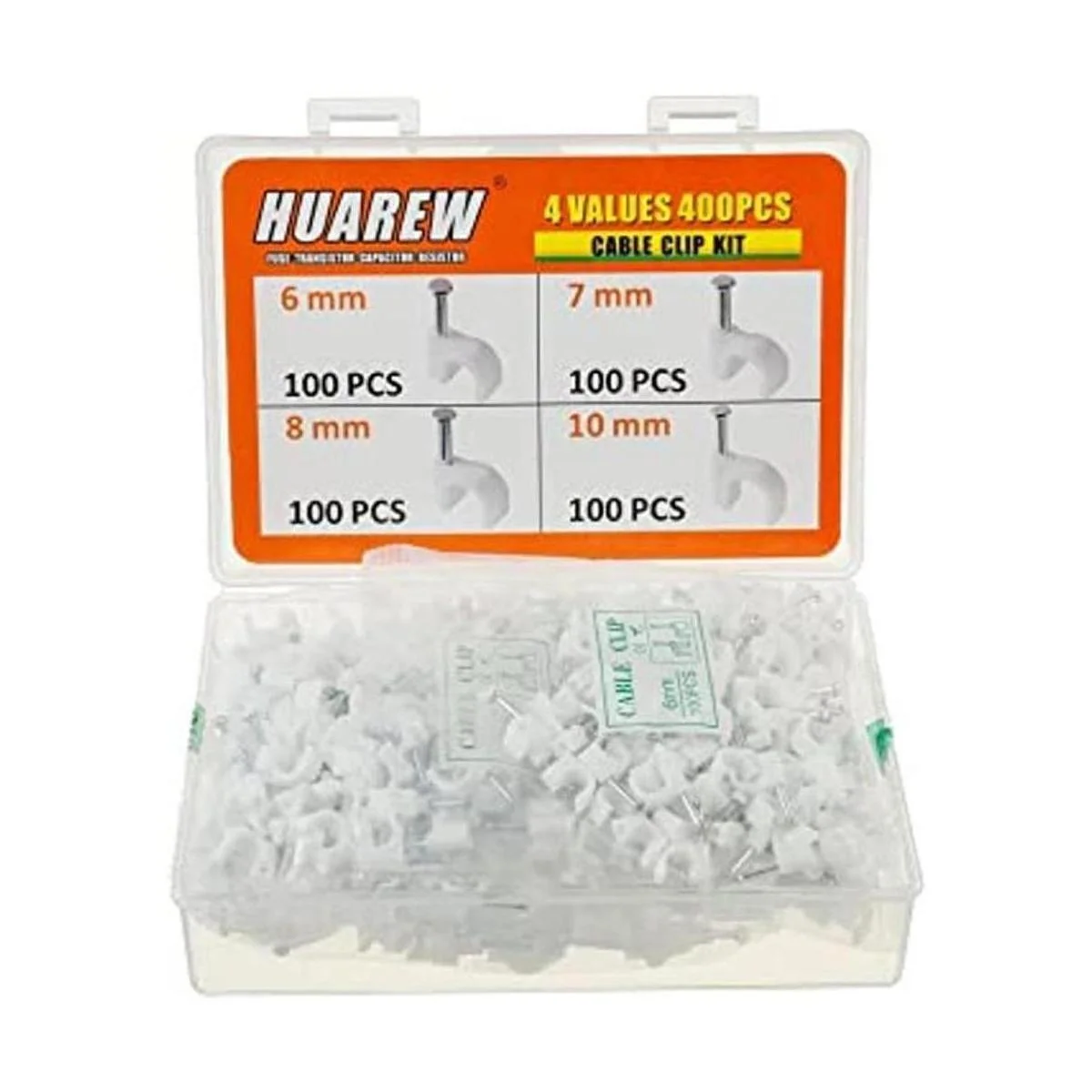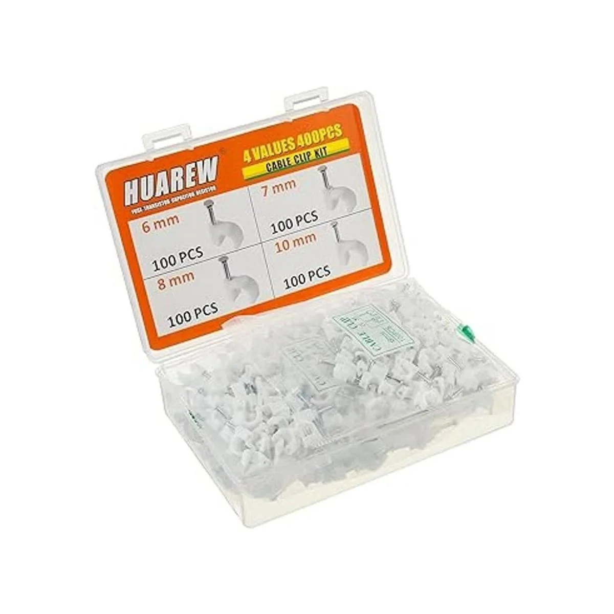 HUAREW 4 tamaños de 400 clips de acero de plástico blanco para clavos que se aplican a RG6 RG59 CAT5 CAT6 EthernetTV, teléfonoluz de estrellas LEDcable de impresión, clips de cable de gestión redondos de 6780.394 in