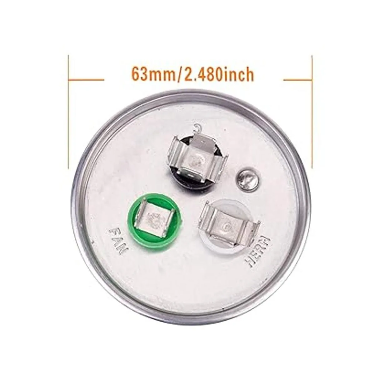 HUAREW Condensador redondo de arranque dual 357.5 uF 6 357.5 MFD 370440 VCA CBB65 de arranque dual para condensador recto frío o bomba de calor, aire acondicionado o motor de CA y arranque del ventilador