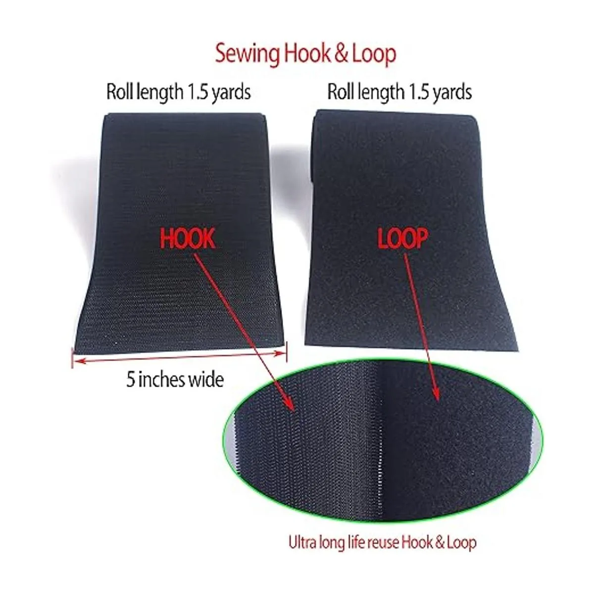 HUAYY Rollo de gancho y bucle de 1.5 pulgadas de ancho, 1.5 yardas de largo, estilo de costura, tiras de tela de nailon no adhesivas, color negro 5 x 1.5 yardas
