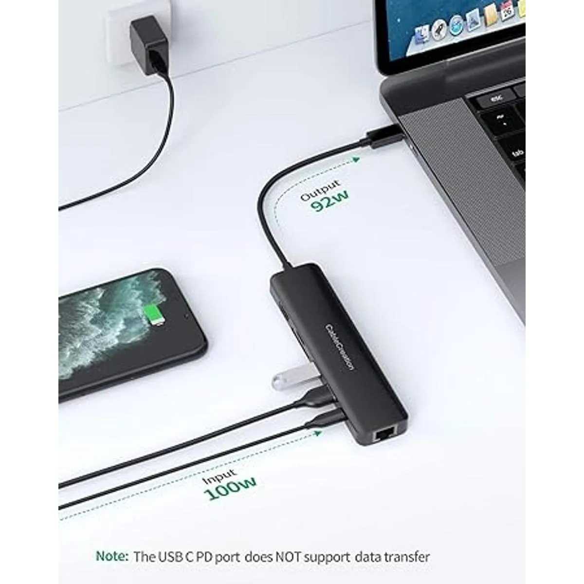 Carga PD de 100 W: el puerto USBC hembra soporta carga de paso USB C de hasta 100 W, entrega de energía para cargar MacBook Pro de 13 pulgadas, 15 pulgadas y 16 pulgadas a toda velocidad mientras tiene todos los puertos de datos en uso, no te preocupes por cortes de energía.