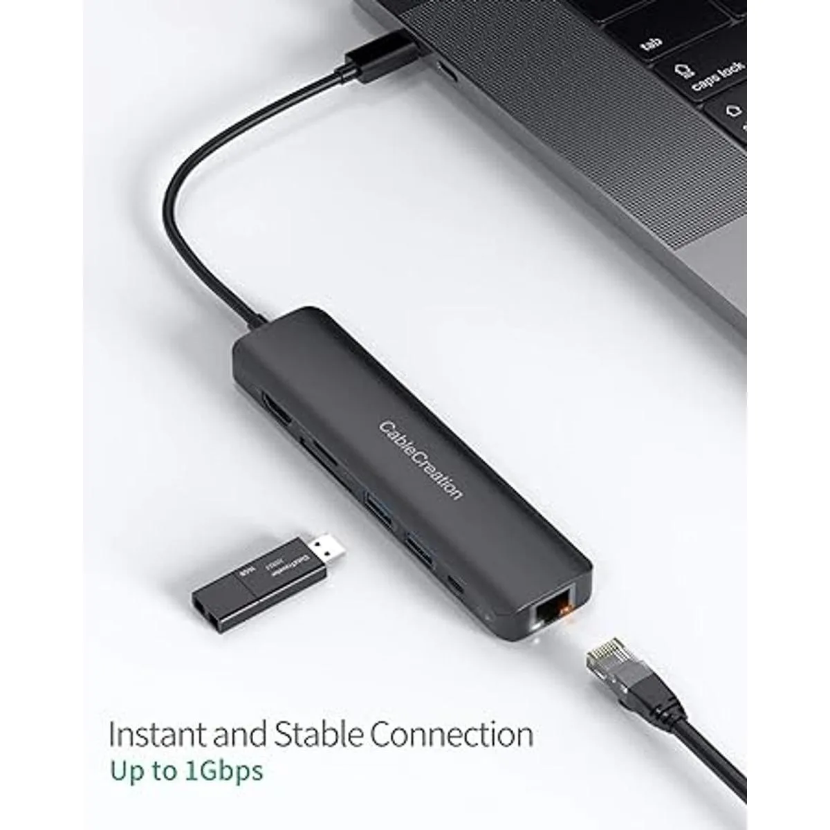 Ethernet de 1 Gbps: sabemos que las conexiones por cable son más seguras y rápidas que las inalámbricas. Puedes ver nuestro hub USB C con un indicador LED, puedes comprobar fácilmente el estado de conexión.