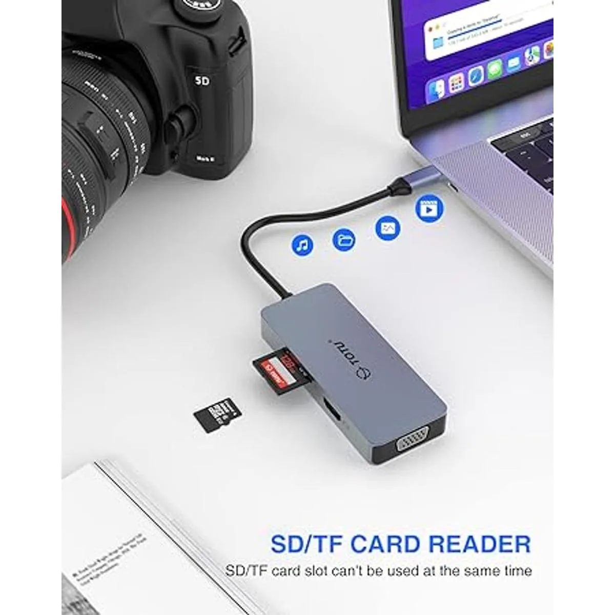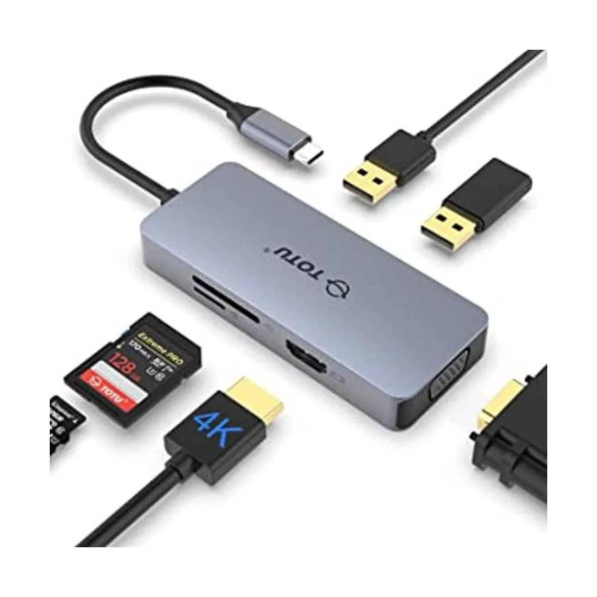 Hub USB C, estación de acoplamiento, concentrador TOTU 6 en 1 tipo C con puerto HDMI 4K, puerto VGA, 2 puertos USB 2.0, lector de tarjetas SDTF, para MacBook y otros portátiles tipo C