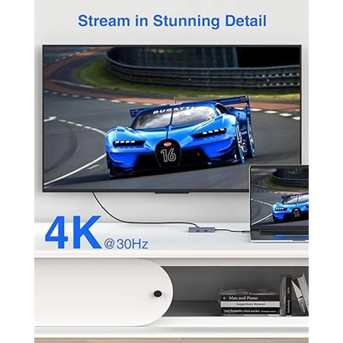 Hub USB C multifuncional ampliamente compatible: un hub de expansión USBC para Mac M1, MacBook/MacBook Pro 2016 o superior, MacBook Air 2018 o superior, Google Chromebook Pixel, Huawei MateBook/MateBook Pro, Dell, Surface Book2/Pro7/Go, HP y Samsung S10, S10Plus, S9, S9 Plus, Note 10, Note 9, Huawei New versión de teléfonos y otro tipo Portátiles C que admiten el modo Display Alt y la entrega de energía.
