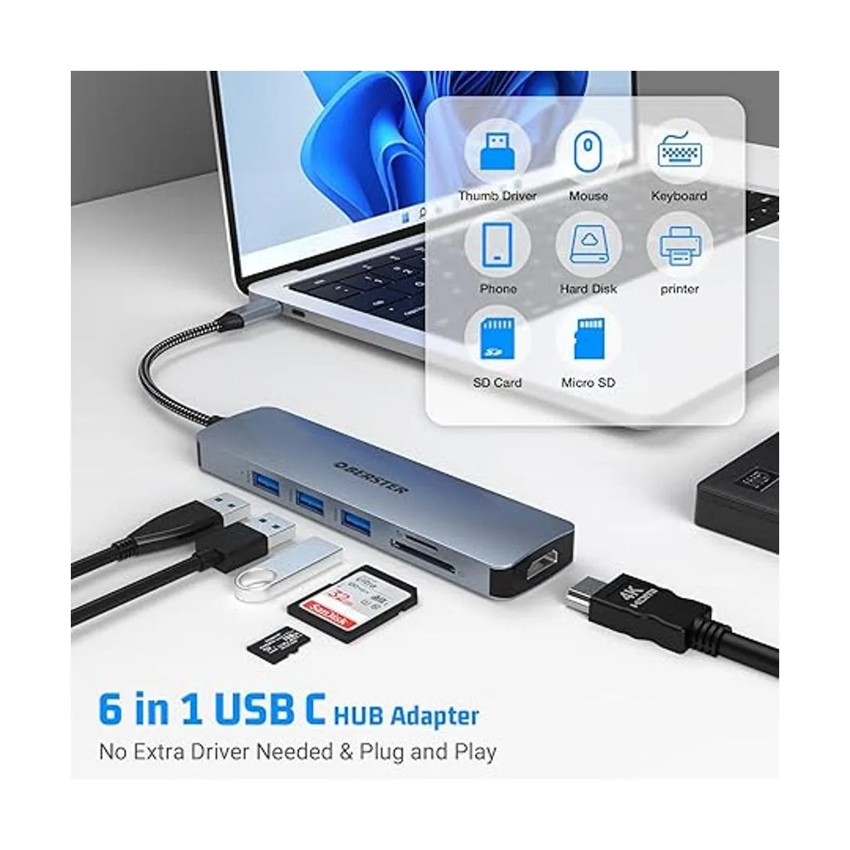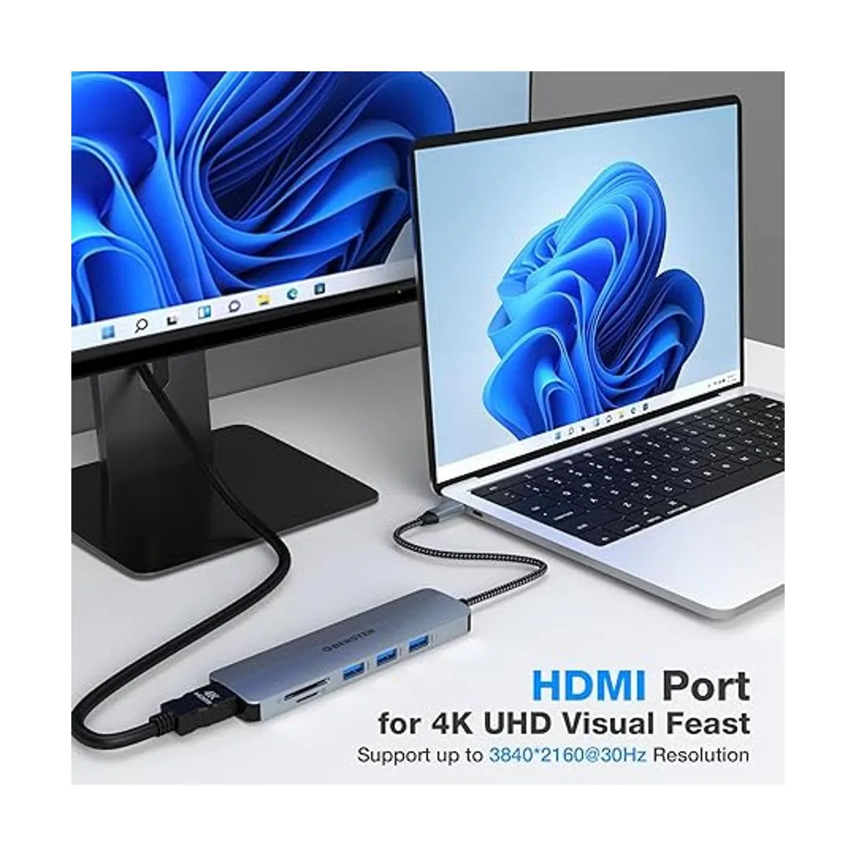 Hub USB C para MacBook ProAir, adaptador USB C multipuerto 6 en 1 con HDMI 4K, 3 USB 3.0, lector de tarjetas SDTF compatible con MacBook ProAirSurface Pro 8 y otros dispositivos tipo C