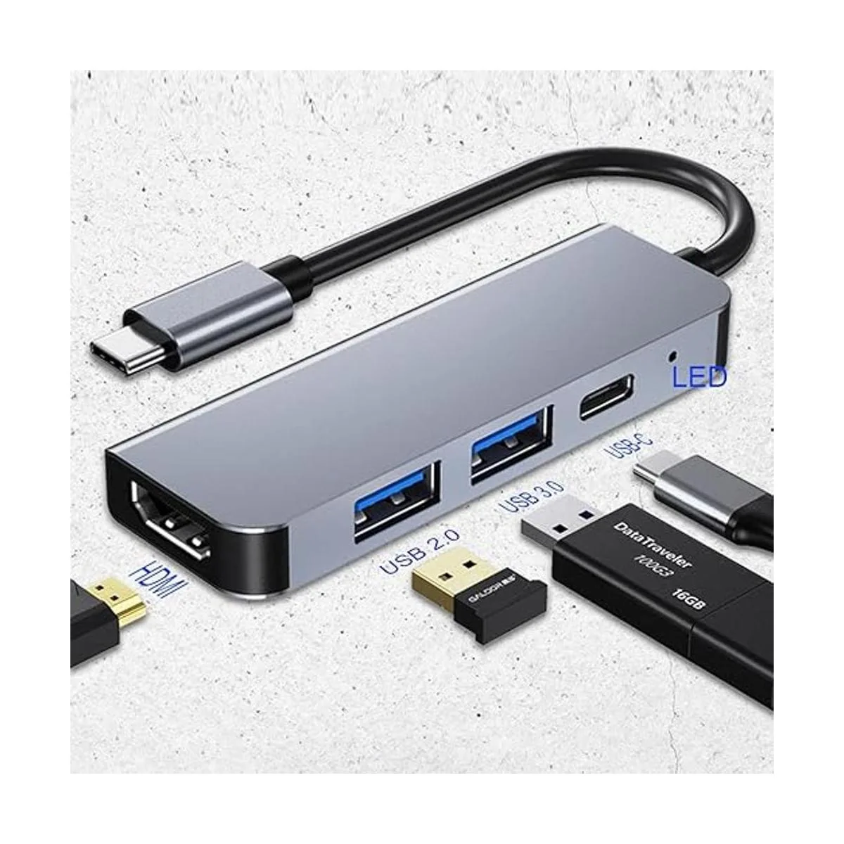 Plug and Play, diseño de múltiples puertos con 1 entrada USBC, 1 salida HDMI, 2 salidas USB 3.0 y 1 puerto PD. El puerto USB 3.0 de corriente de salida máxima es de 0,9 A solamente, que no puede conectar dispositivos de alto consumo de energía, como el disco duro externo/CDROM/DVDROM. Y no recomendamos utilizar el puerto USB 3.0 para cargar también, ya que la velocidad de carga será lenta.