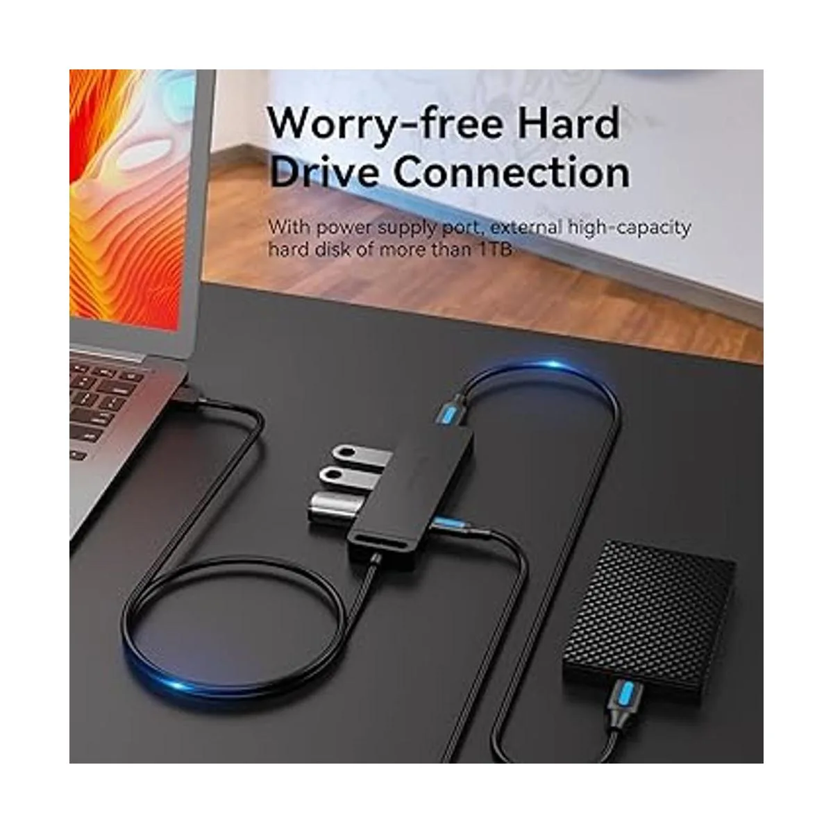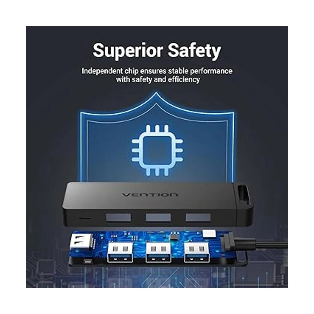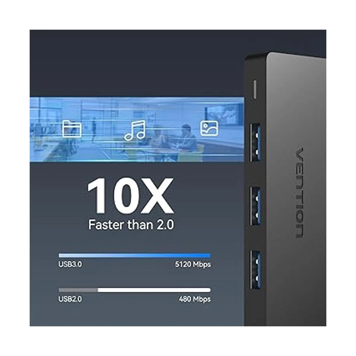 Hub USB VENTION 4 puertos USB 3.0 Hub de 1.5 pies ultra delgado de datos USB de carga compatible con MacBook, laptop, Surface Pro, PS4, PC, unidad flash, disco duro móvil