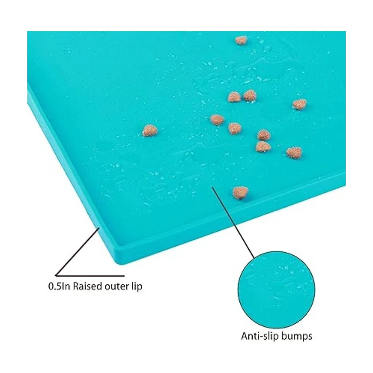 EXTRATALL LIP PREVENTS SPILLS: Super high outer lip 0.5 raised edge keeps all the mess contained on the doggie placemat and away from your floor. Anti skid surface prevents dog bowls from moving. Use this cute waterproof mat under pet food bowls for dogs, water dishes, pet fountains, automatic feeders, feeding stations to protect your floors.