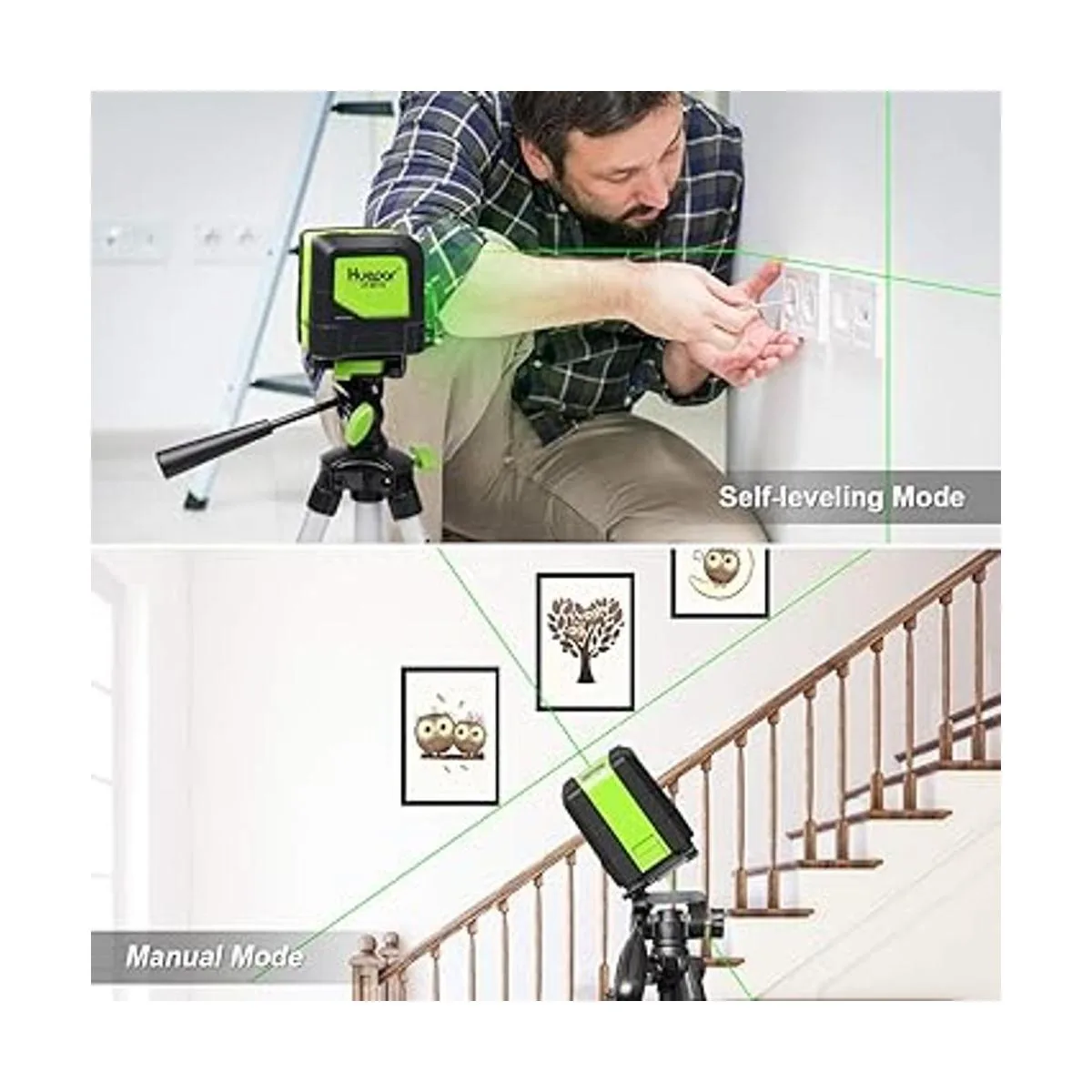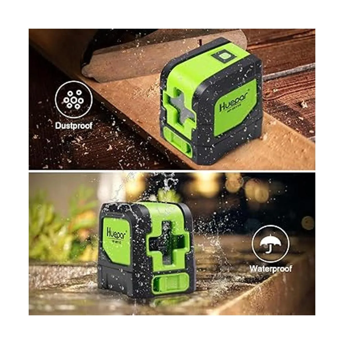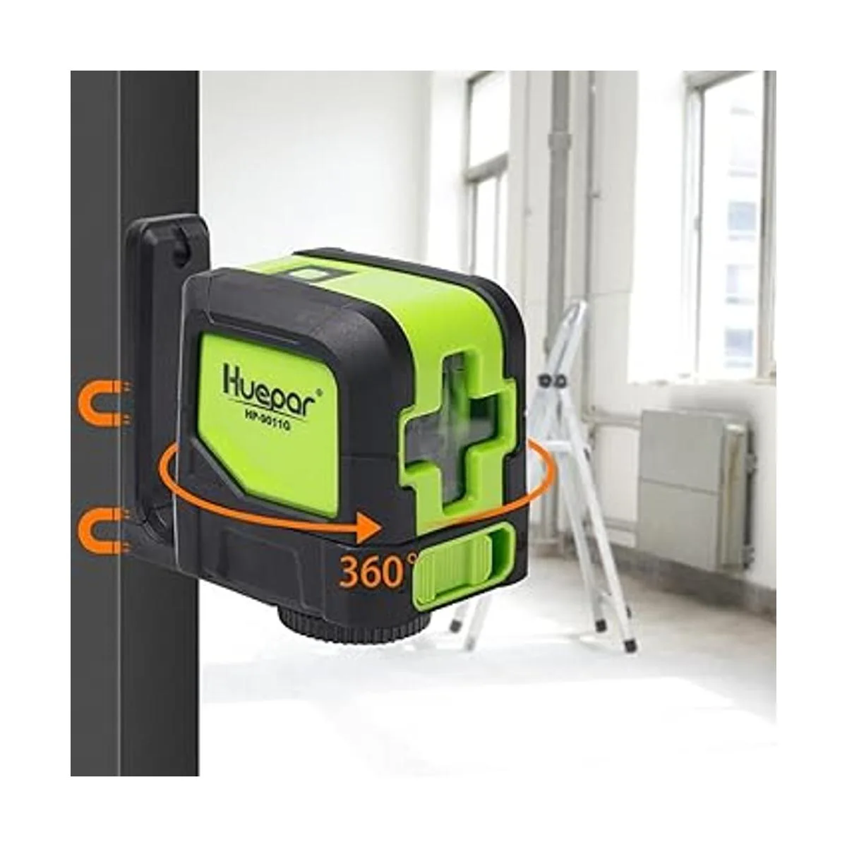 Huepar Láser de línea cruzada DIY autonivelante haz verde horizontal y vertical nivel láser de línea con visibilidad de 100 pies, líneas láser brillantes con base pivotante magnética de 360 M9011G