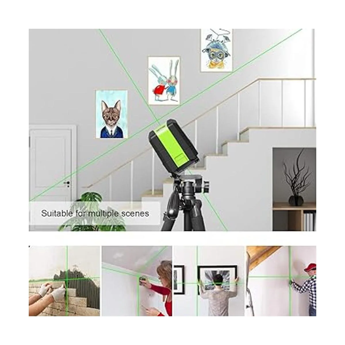 Compacto y práctico: con su agarre suave, peso ligero y diseño de tamaño palma, el M9011G es la herramienta láser más práctica y profesional que puedes pensar para llevar a cabo el trabajo para todos los oficios, desde instalación de techo caído, accesorios de iluminación, alineación de marcos de fotos y azulejos de pared hasta baldosas de suelo, etc. Una herramienta de mejoras para el hogar de ensueño real es útil.