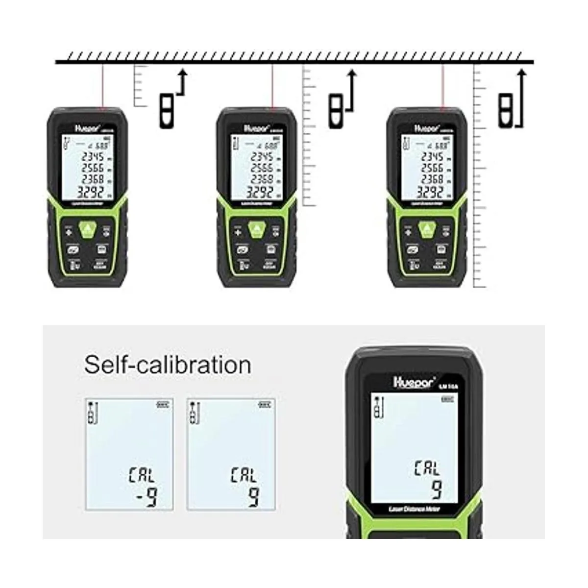 Alta precisión e interruptor de unidad: la medida de distancia Huepar cuenta con medición de largo alcance con precisión extrema y puede medir distancias de hasta 165 pies dentro de 1/16 pulgadas. La herramienta puede medir desde puntos de referencia delanteros/medios/traseros, por lo que es fácil de medir en diferentes escenarios. Todas las medidas se muestran en tiempo real y se pueden cambiar entre M/In/FT libremente.