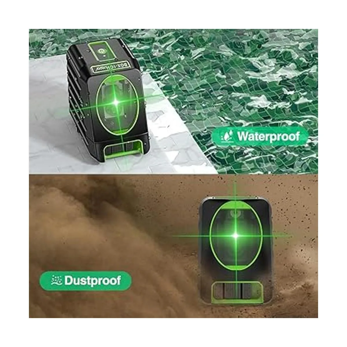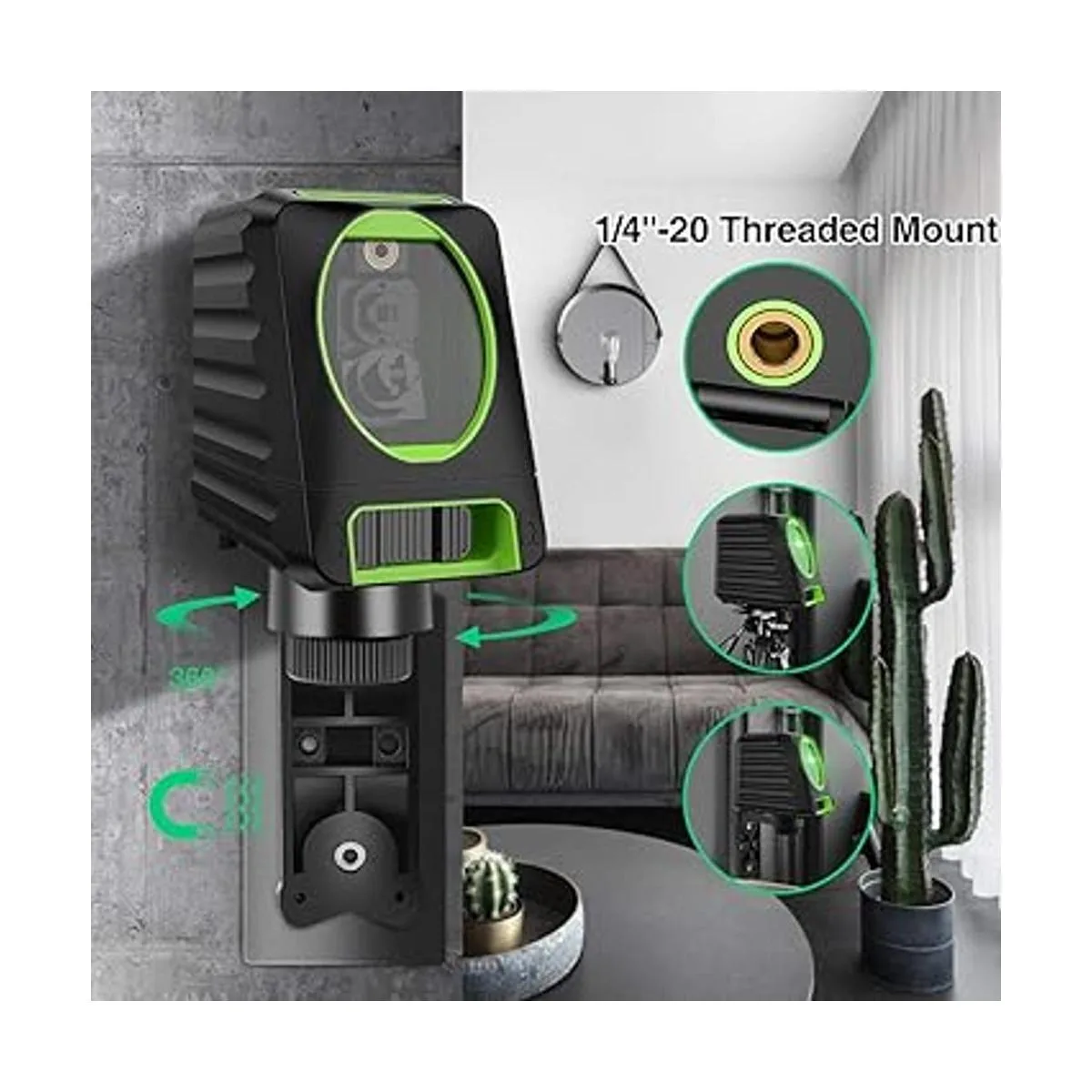 Soporte magnético y diseño duradero: el fuerte soporte magnético en forma de L incluido permite la fijación a superficies de metal y gira el nivel láser a 180. La herramienta láser también ofrece roscas de montaje de 1/420 para monturas estándar de trípode o poste láser. Además, la carcasa de goma suave TPR en general, así como el diseño compacto hacen que la herramienta láser sea más duradera y portátil.