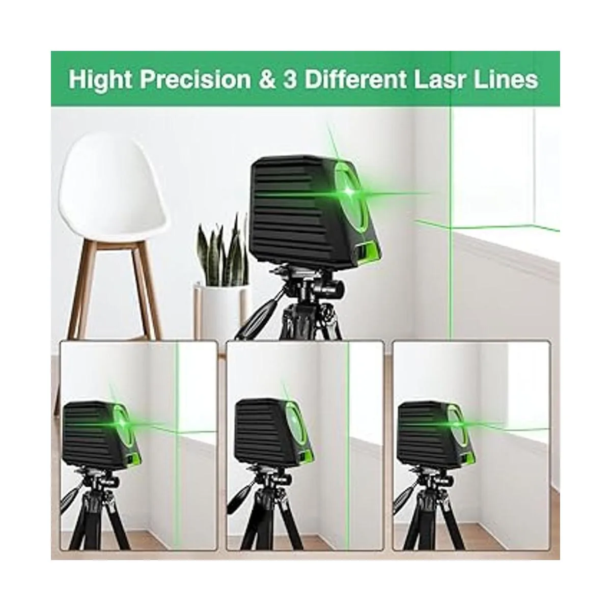 Alta precisión y láser de línea cruzada: esta herramienta láser adopta un haz verde ultra brillante con 1/13 pulgadas a 33 pies de alta precisión. Proyecta una línea horizontal de 130 y una vertical de 150 para una amplia gama de aplicaciones de nivelación y alineación. Este láser también es ideal para pavimentar azulejos, instalar fotos, puertas, ventanas o muebles carpintería, colgar papel pintado, etc.