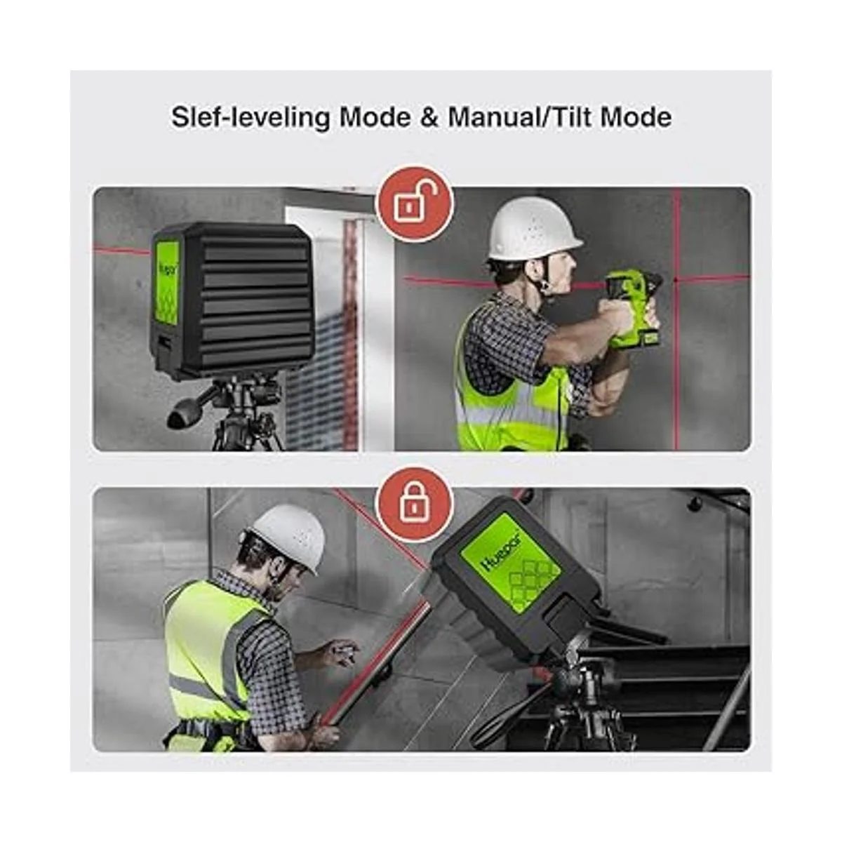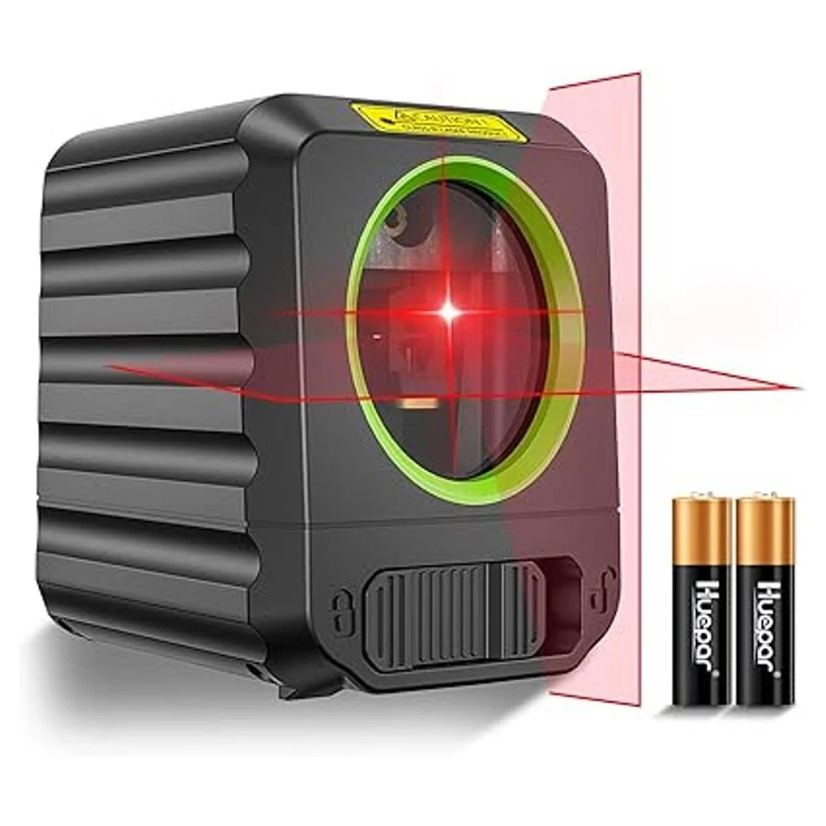Huepar Nivel láser, nivel láser autonivelante con línea cruzada de haz rojo, línea vertical y horizontal, herramienta láser de alineación de 66 pies para colgar fotos y aplicación de bricolaje, batería incluidaB011R