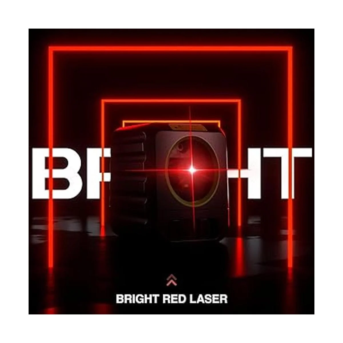 Láser de línea cruzada roja brillante: con dos láseres de línea cruzada de haz rojo brillante es claro y afilado, proyecta fácilmente líneas cruzadas en un gran ángulo de 110 para ayudar a tu trabajo de nivelación. El láser de línea cruzada B011R alinea e instala fácilmente armarios o molduras, y las líneas verticales y horizontales rojas más brillantes pueden proyectar hasta 66 pies de distancia.