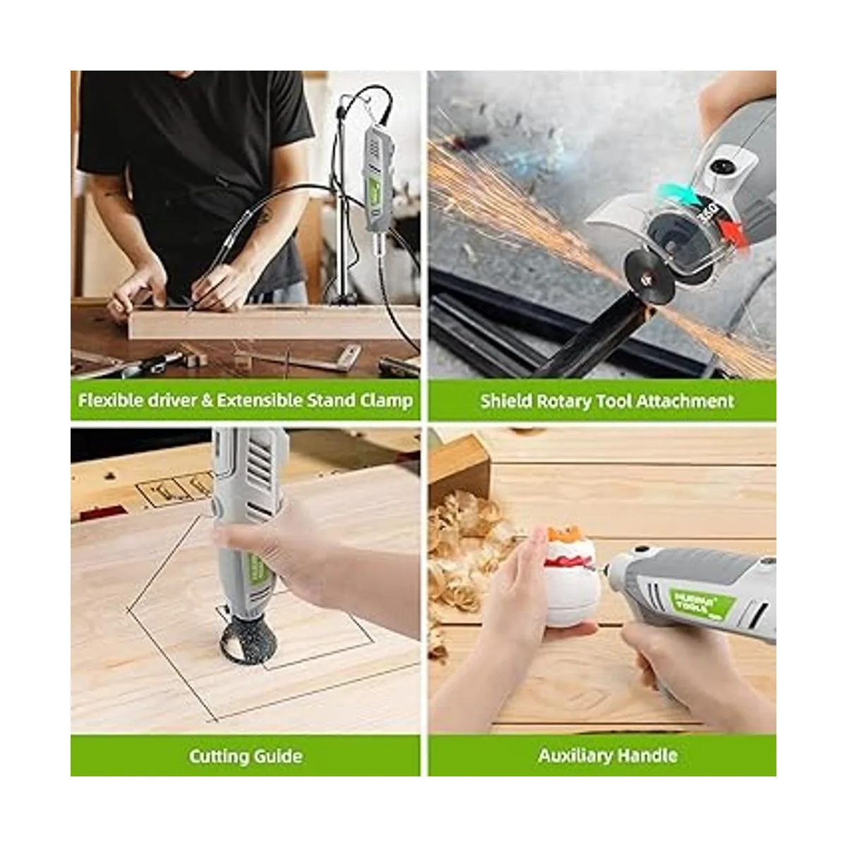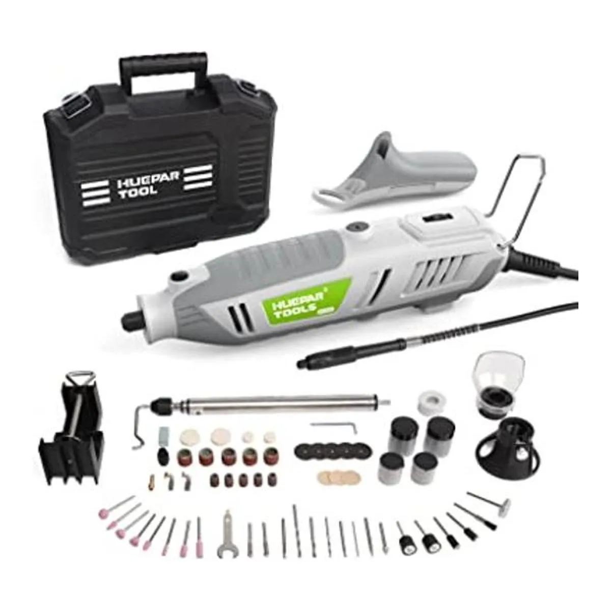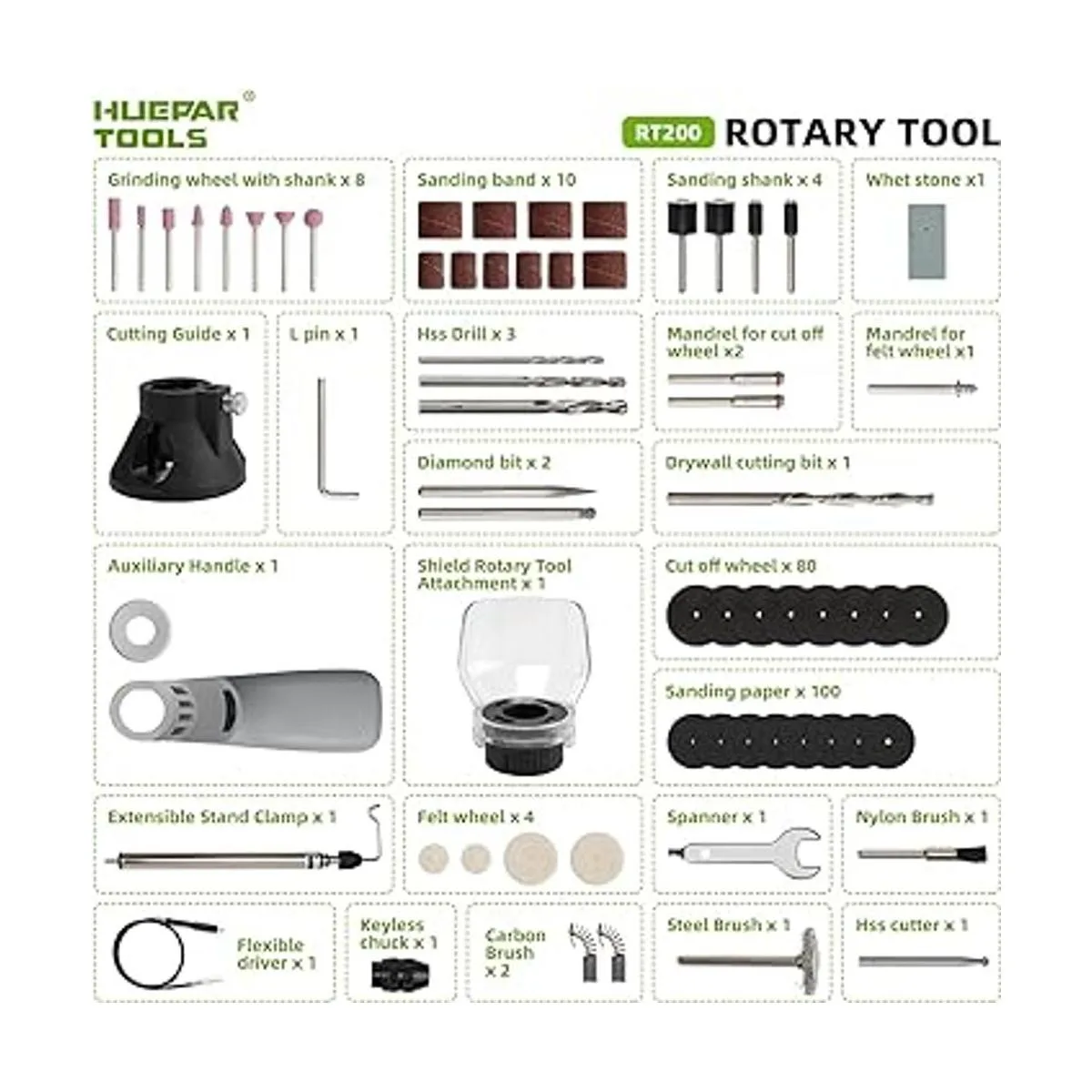 Huepar Tools Herramienta giratoria de 200 W, kit de herramientas múltiples con 222 accesorios y 5 accesorios, 6 velocidades variables de 1000040000 RPM para reparaciones de bricolaje y proyectos de manualidades corte, lijado, pulido, perforación
