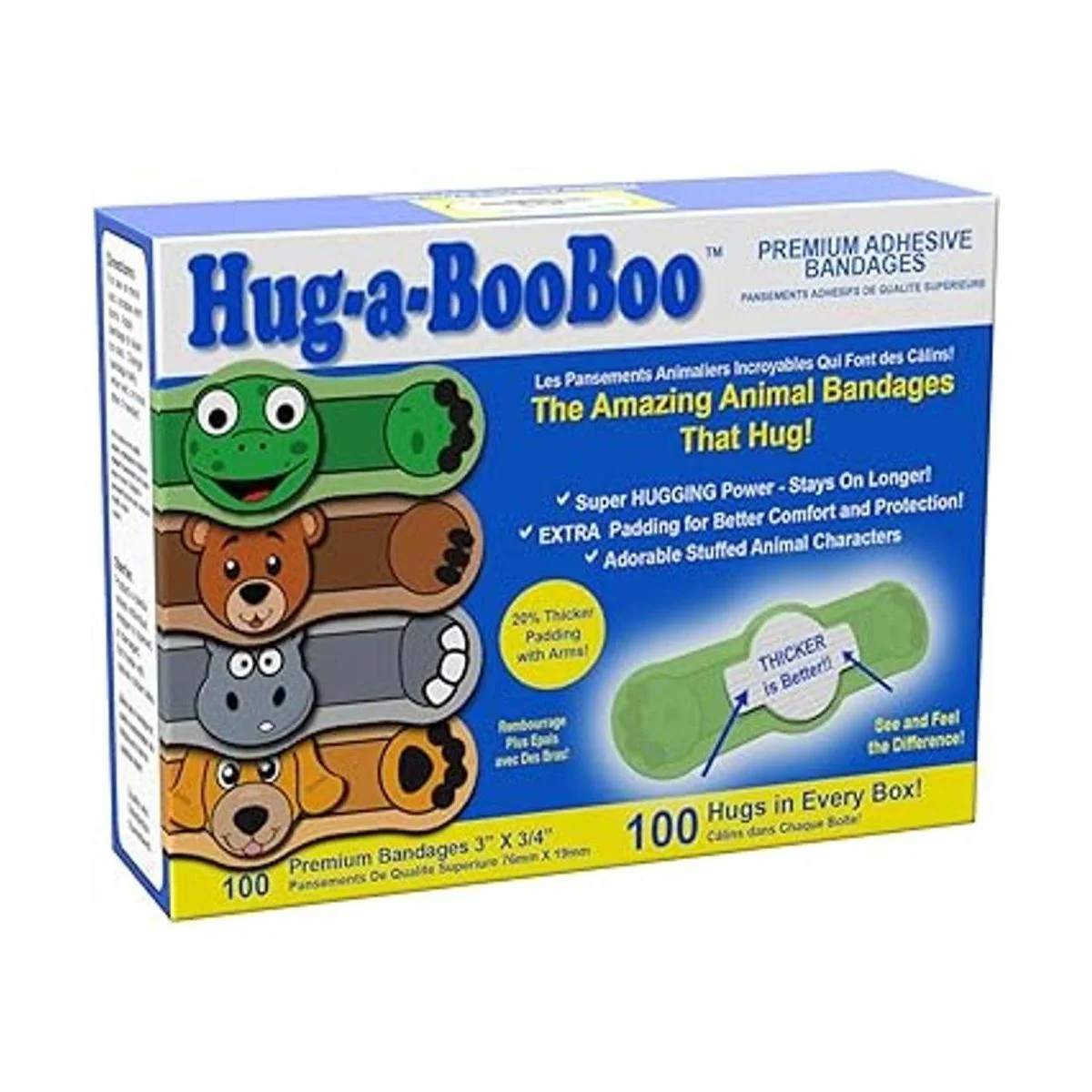 Cada BooBoo necesita un abrazo, por lo que hemos creado un vendaje que le da uno Los adorables personajes de animales de las vendas adhesivas HugaBooBoo Premium tienen brazos extendidos, esperando dar un abrazo reconfortante a cualquier rasguño o corte.