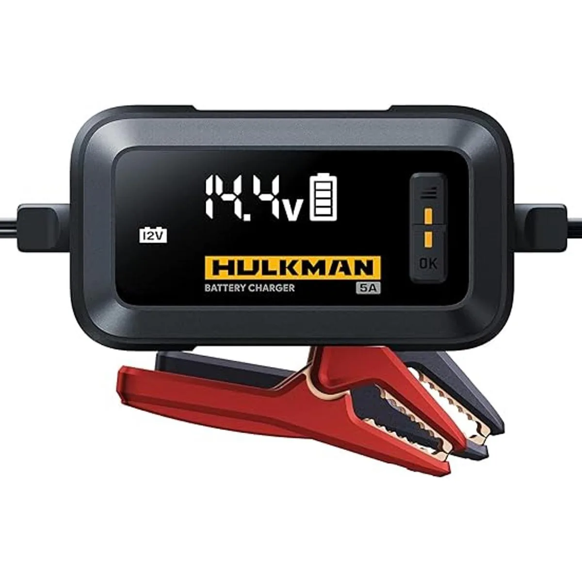 HULKMAN Sigma Cargador y mantenedor de batería inteligente de 5 amperios para batería de 6 V12 V con cargador de goteo de pantalla LED y desulfatador para batería de plomoácido e iones de litio para automóvil, SUV y más