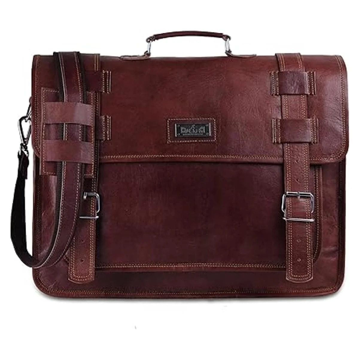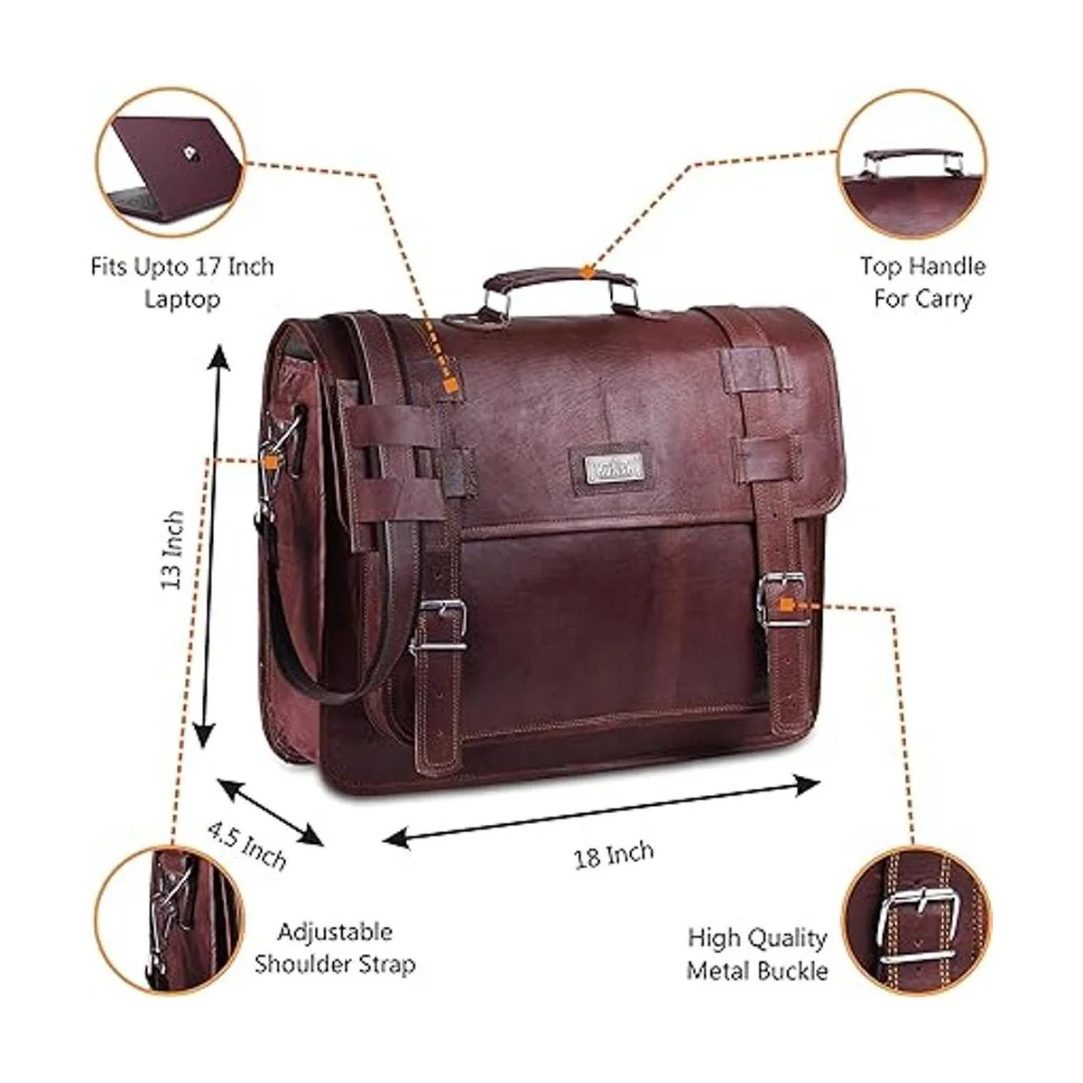 Cuero auténtico hecho a mano: esta bolsa está hecha de cuero genuino que está hecha a mano por nuestros expertos artesanos para hacer la mejor bolsa de cuero para hombres y mujeres. Cuero de grano completo utilizado que mantiene la bolsa duradera durante años sin ningún daño y también después de usarlo con el tiempo te dará un aspecto vintage que te inspira. Este maletín de cuero se volverá más suave, nunca pasará de moda y comenzarás a amarlo.