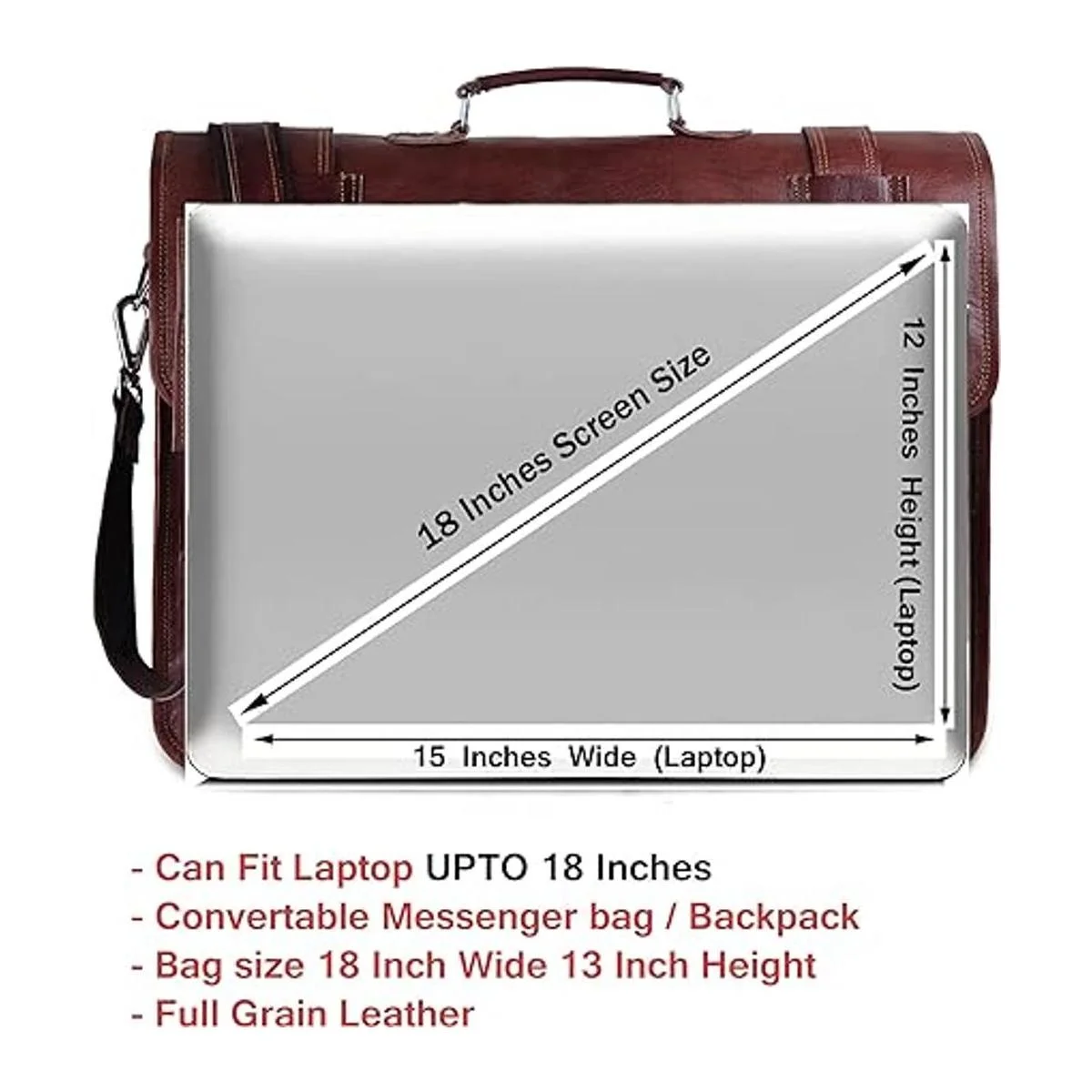 Almacenamiento y funcionalidad: esta bolsa de cuero convertible está diseñada para una máxima funcionalidad con súper almacenamiento equipado con un tamaño de 18 pulgadas de ancho x 13 pulgadas de alto x 5 pulgadas de profundidad, 2 fundas acolchadas dedicadas, 1 en la parte delantera interna, 1 en la parte trasera interna se adapta a 2 portátiles de hasta 18 pulgadas El compartimento principal tiene suficiente espacio para otros archivos/carpetas, incluso puedes llevar ropa durante la noche con 1 bolsillo grande, 3 compartimentos con cremallera. 1 interno 1 1 interno Parte delantera exterior y 1 parte trasera de la bolsa para mantener las cosas a mano.