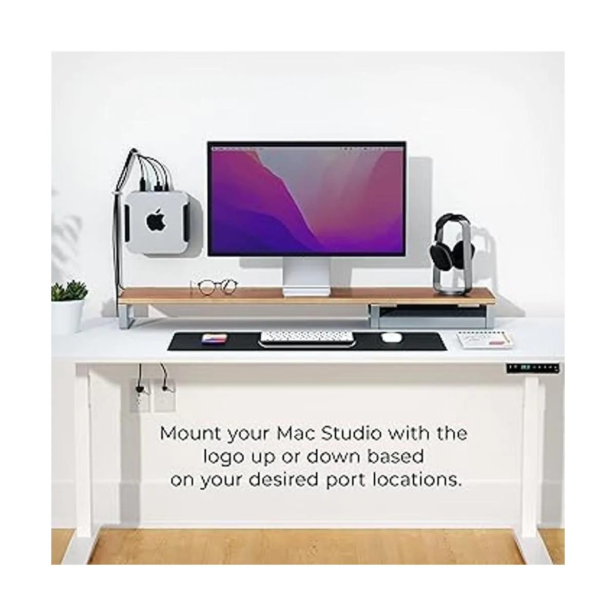 Monta tu Apple Mac Studio y ahorra espacio en el escritorio con un soporte de pared diseñado solo para Apple Mac Studio. Accede a puertos críticos y orienta el soporte de pared Mac Studio para adaptarse a tus necesidades de espacio de trabajo. Móntalo en la pared detrás de un escritorio o monitor de computadora.