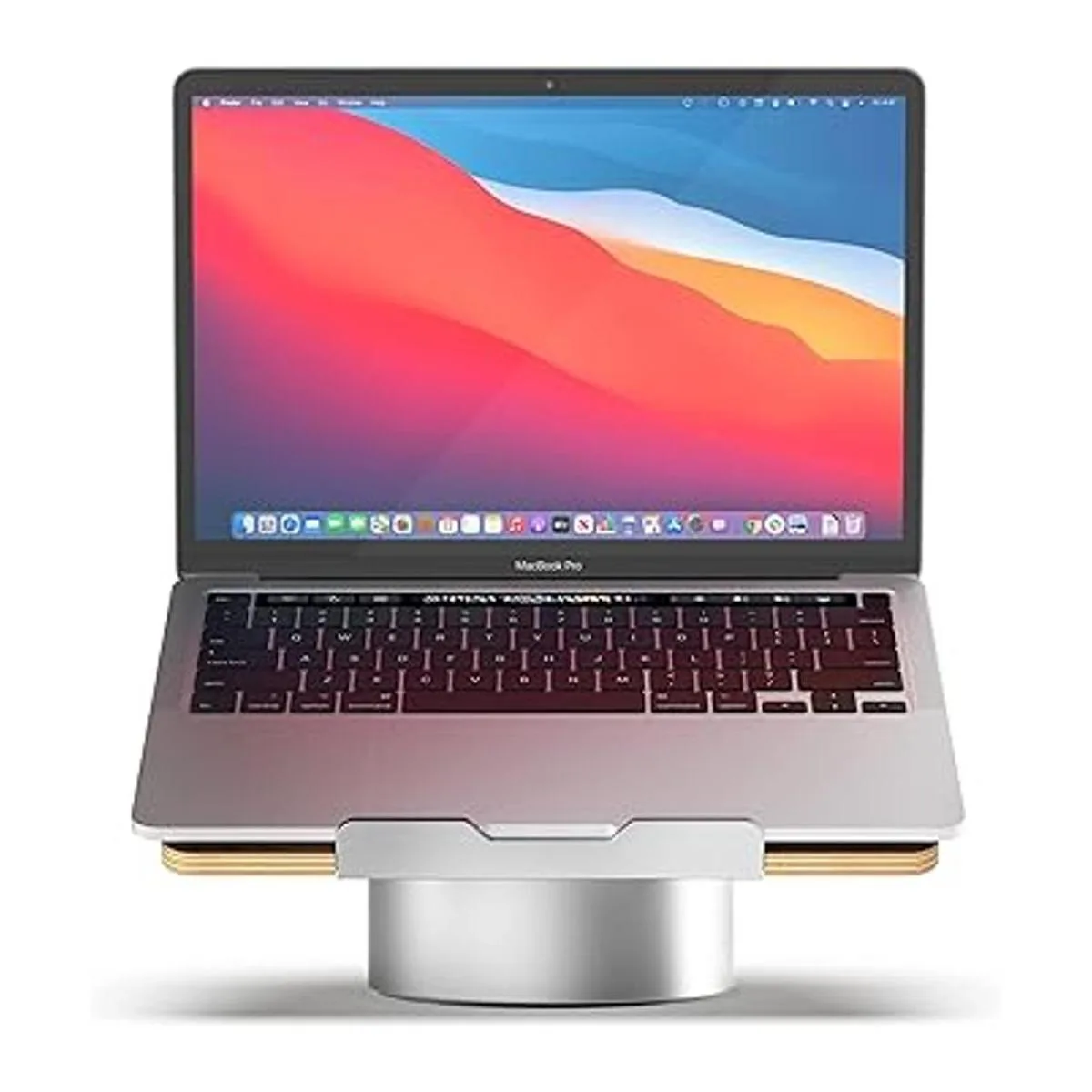 Construcción y materiales de alta calidad: la base cilíndrica gris espacial está hecha de metal de aluminio anodizado y tiene una parte inferior de silicona para evitar movimientos no deseados. La madera es auténtica chapa de nogal negro sobre madera contrachapada de alta calidad que da un efecto de capa a lo largo del borde. El borde frontal también está acolchado con silicona para evitar arañazos en tu computadora.