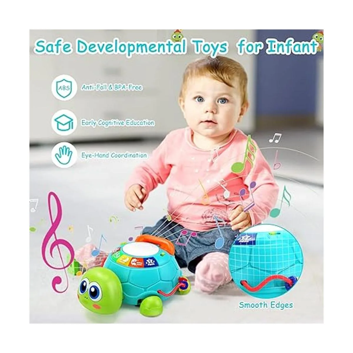 Varios modos de juego divertidos para explorar: perseguir tortuga gateando, tocar tambor de mano, marcar número de teléfono, aprender abc y 123, tocar 8 canciones de cuna, 6 animales y 5 efectos de sonido de instrumentos musicales, cuentas giratorias. Tu pequeño no podrá mantener los ojos y las manos fuera de este juguete interactivo en movimiento para bebés de 6 a 12 meses.