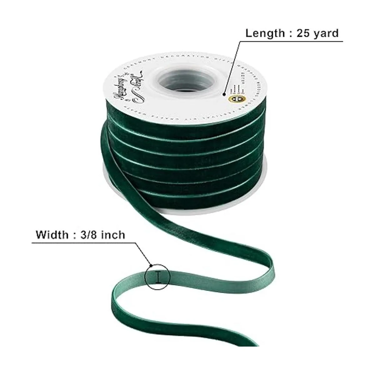 Acerca de la cinta de terciopelo Ancho: 3/8 pulgadas de largo, 25 yardas, textura de terciopelo suave y brillo lujoso.