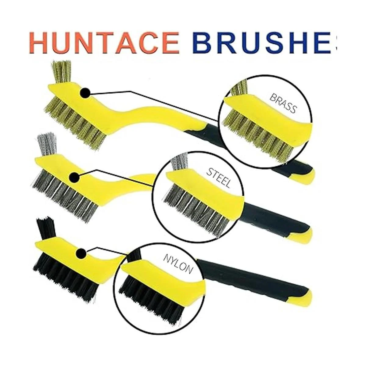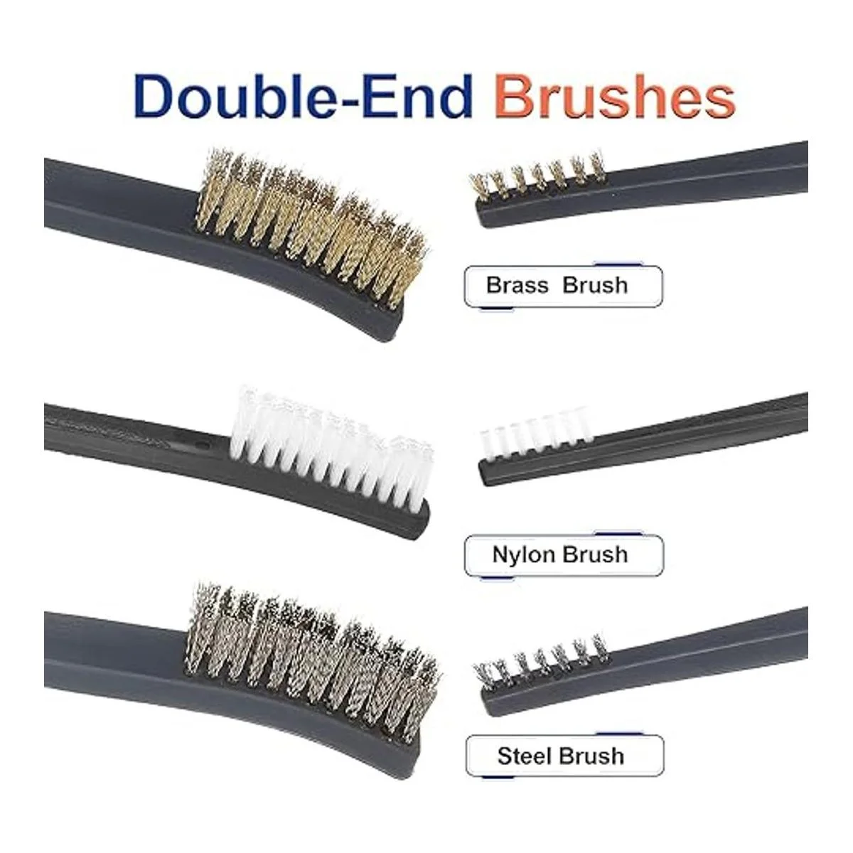 HUNTACE 8 piezas de cepillo de alambre pequeño de latón, acero inoxidable, nailon para limpiar la eliminación de óxido, suciedad, juego de cepillos de alambre de limpieza de doble extremo