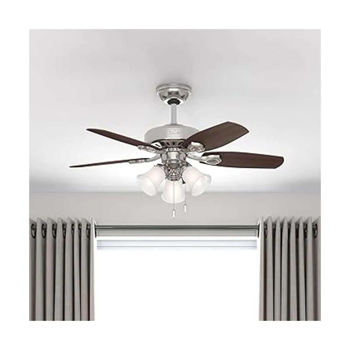 Hunter Fan Company 52106 Hunter Builder Ventilador de techo para interiores con luz LED y control de cadena de tracción, 42 pulgadas, acabado de níquel cepillado