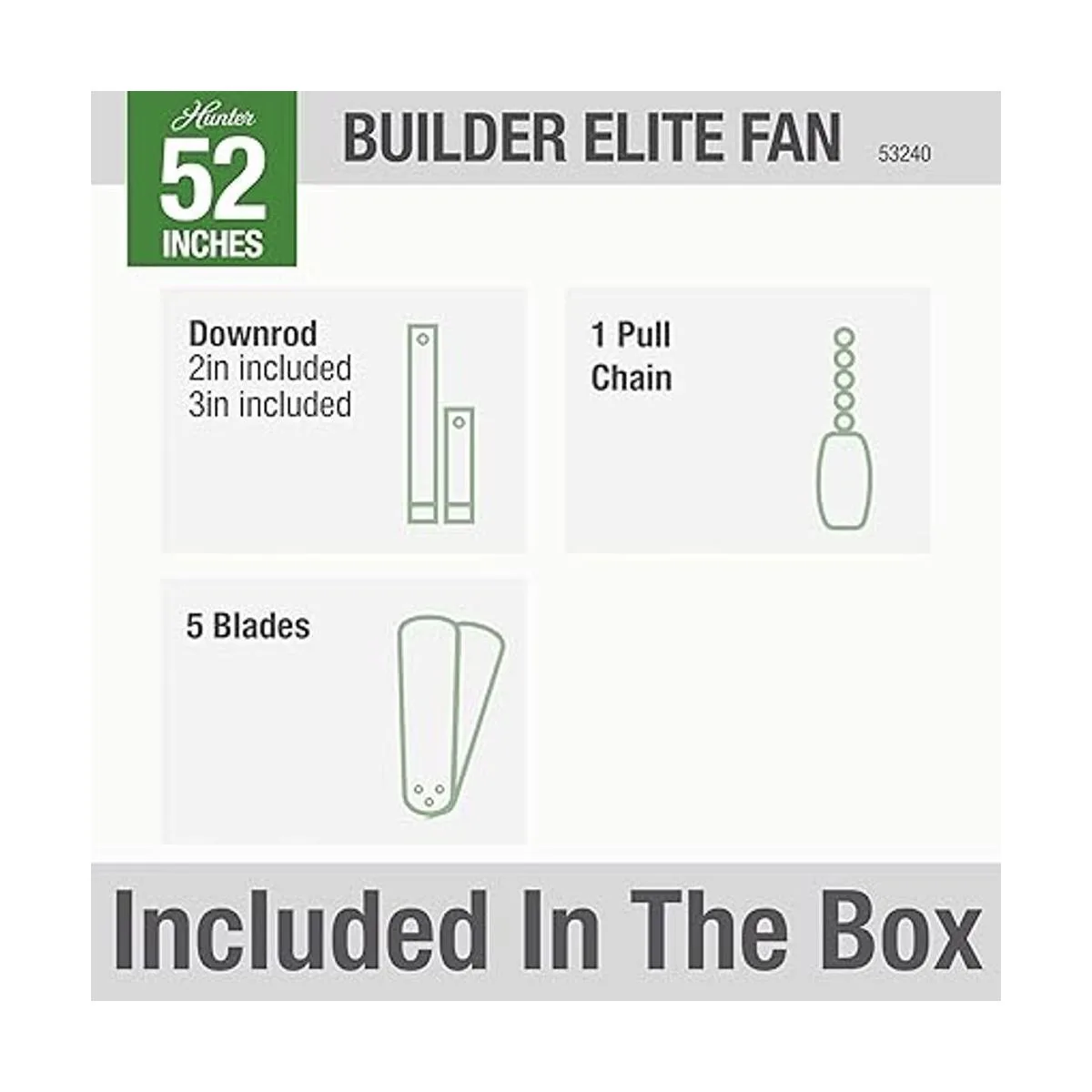 Hunter Fan Company 53240 Builder Elite Ventilador de techo para interiores con control de cadena de tracción, 52 pulgadas, acabado blanco nieve