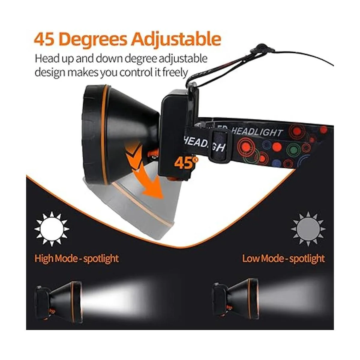 Hunting friends Superbright Linterna frontal LED resistente al agua, linterna de cabeza de mina de carbón, 3 baterías recargables 18650, 2 modos de luz, faro delantero para exteriores luz blanca