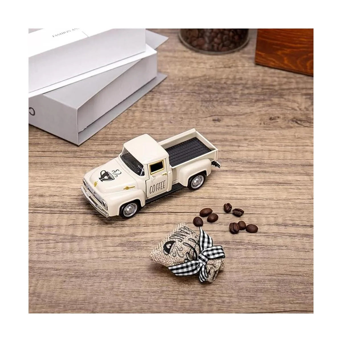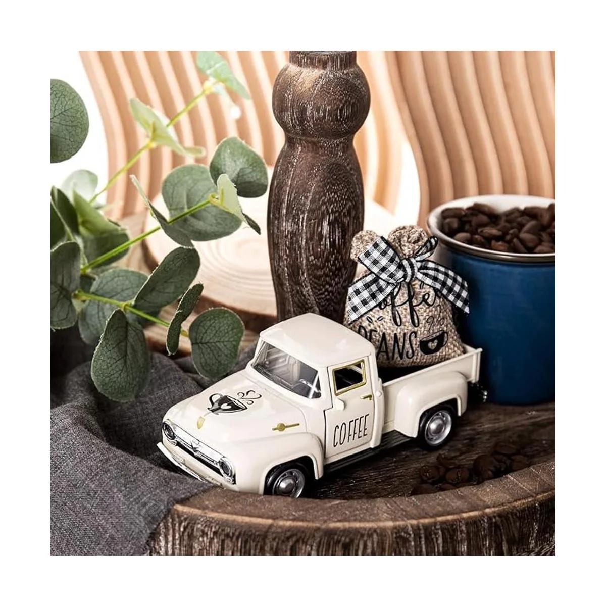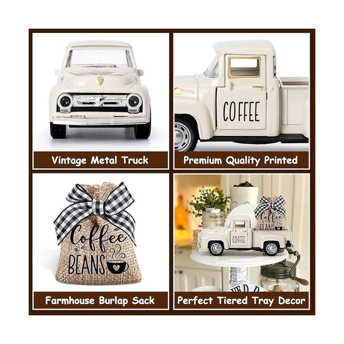 Huray Rayho Decoración de café para barra de café, camión de metal con granos de café, saco de arpillera, recolección vintage, estación de café, bandeja escalonada, decoración de mini camión fundido a presión