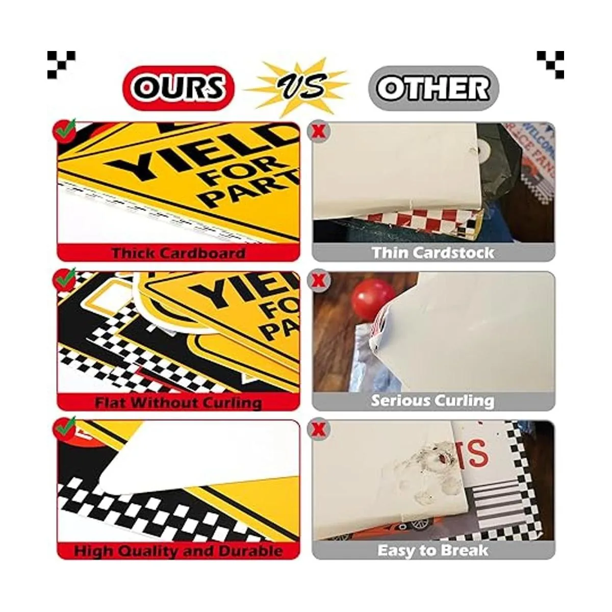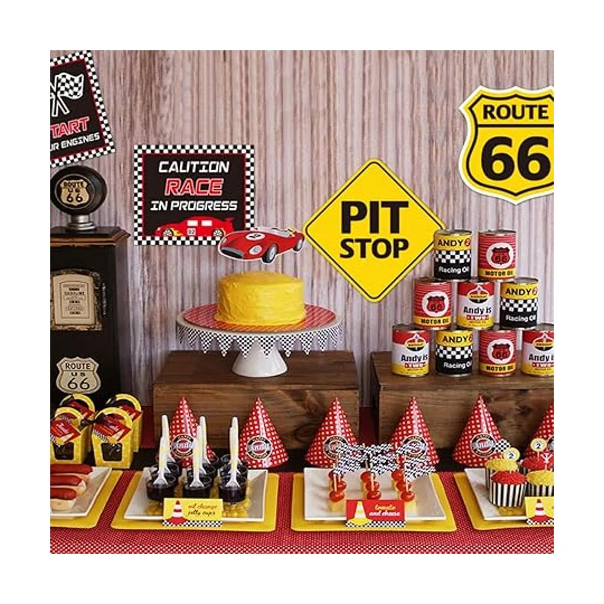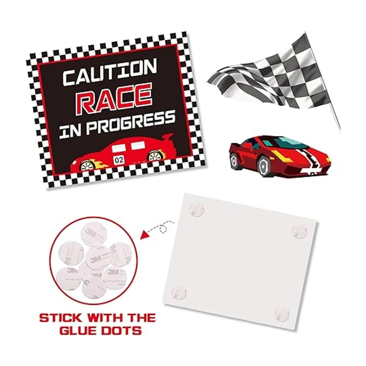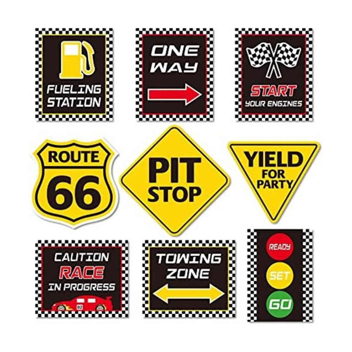 Amplia gama de usos: estos carteles de carreras son ideales para varias ocasiones Decora las habitaciones temáticas de carreras o el aula de tus hijos. salo como centros de mesa para una fiesta temática de coche de carreras, como un telón de fondo de fotos para tomar fotos con tus amigos y tener recuerdos divertidos para el gran día