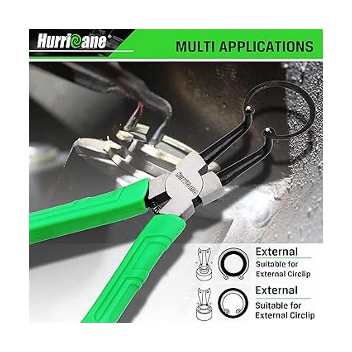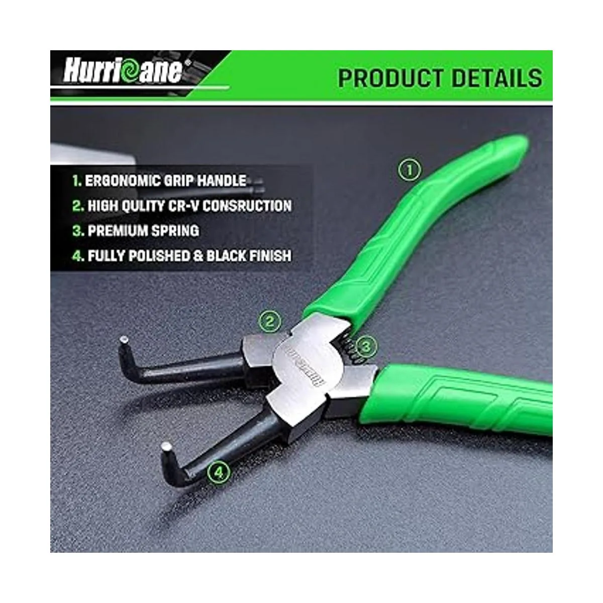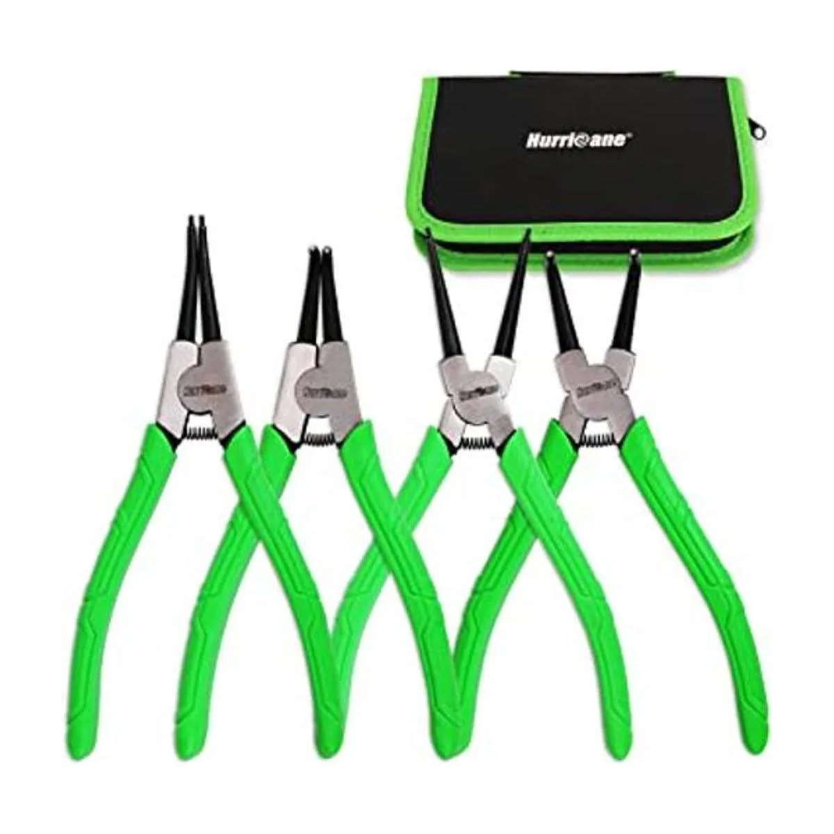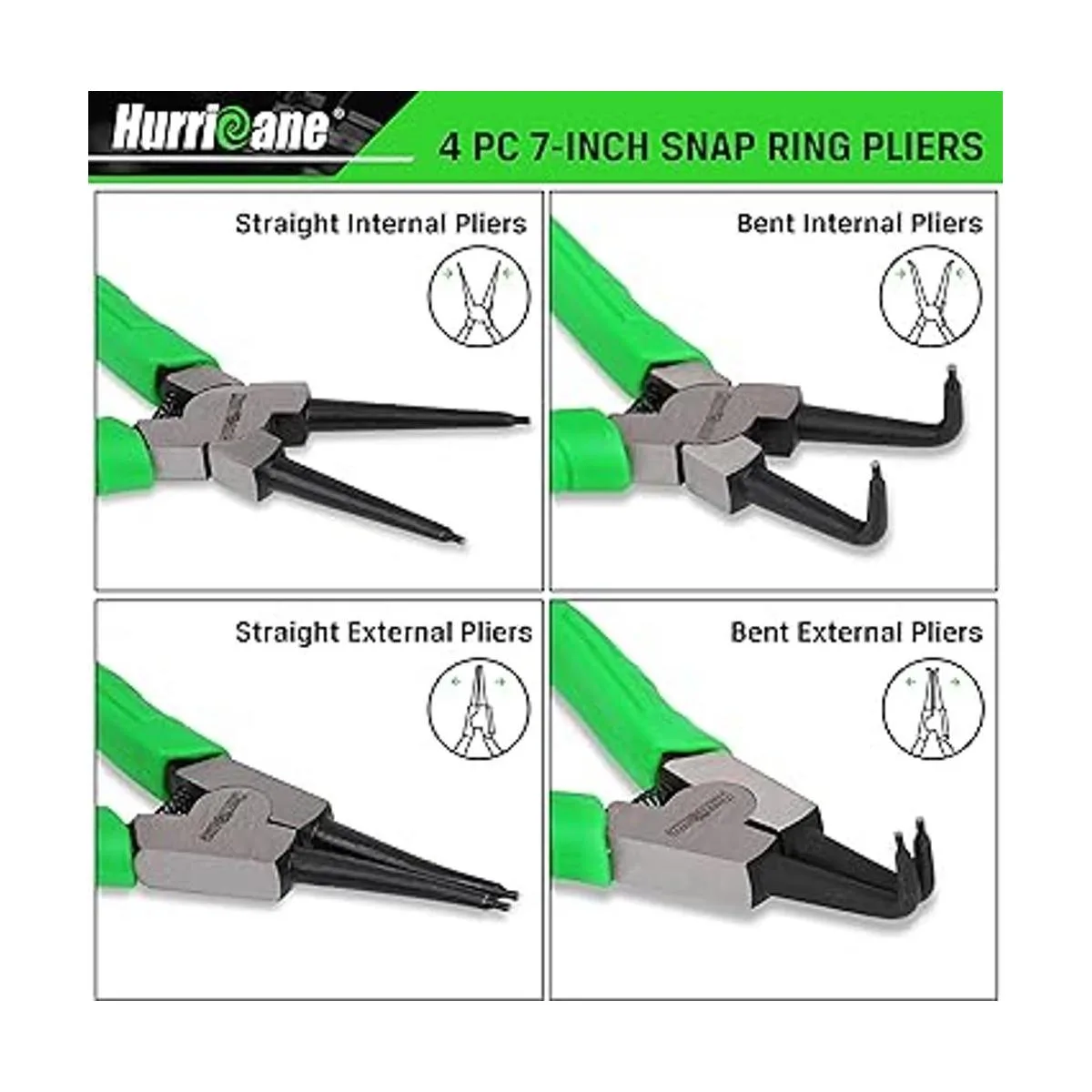 HURRICANE Juego de 4 alicates de anillo a presión, kit de alicates internos y externos de 7 pulgadas, alicates de mandíbula rectos y doblados CRV, ideal para quitar anillas, retención y extracción de mangueras, con bolsa de almacenamiento portátil