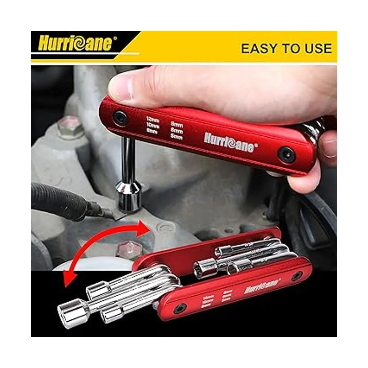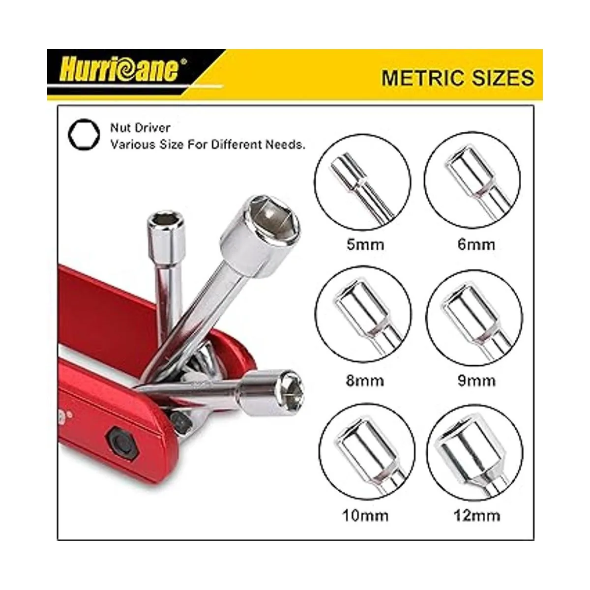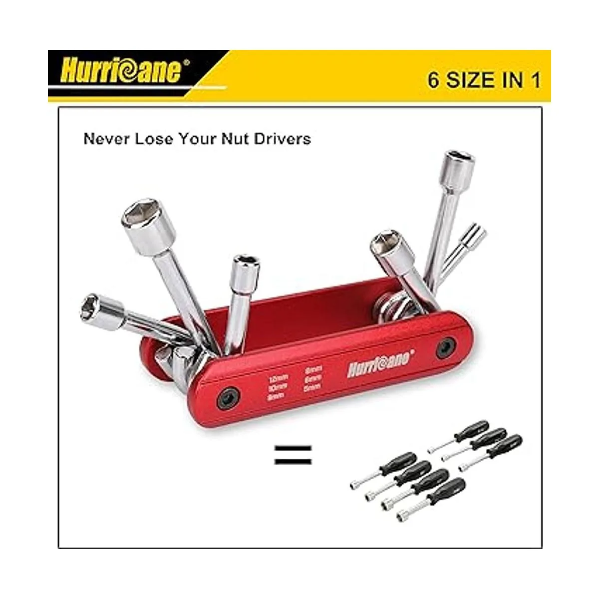 HURRICANE Juego de destornilladores de tuercas plegables 6 en 1, juego de destornilladores de tuercas hexagonales de tamaño métrico, vástago de acero al cromo vanadio, mango de aluminio de alta calidad. Portátil, fácil de llevar. Incluye 0.197 in, 0.236 in, 0.315 in, 0.354 in, 0.394 in, 0.472 in