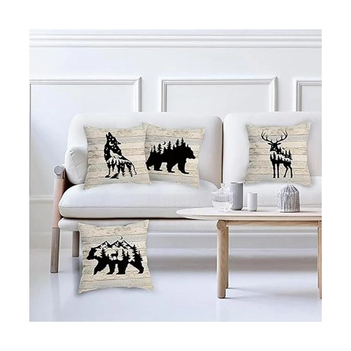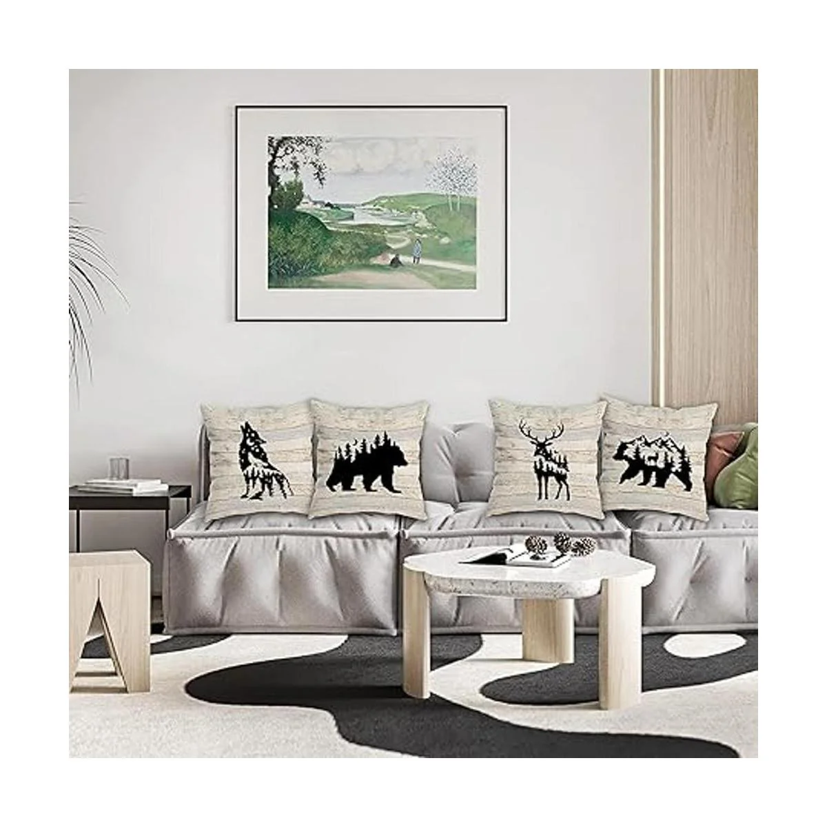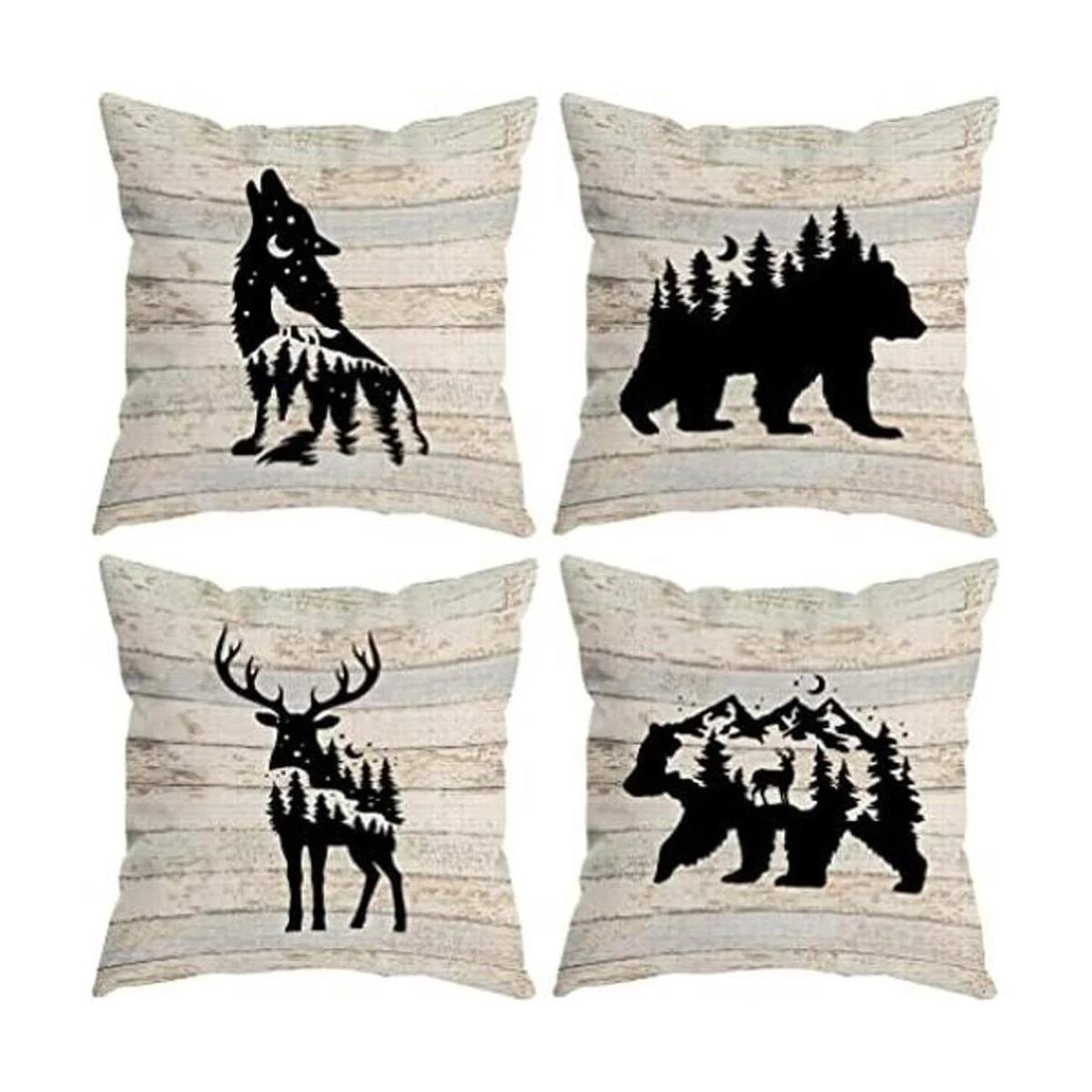 HUYAW Woodland Juego de 4 fundas de almohada de campamento para amantes de la vida silvestre para hombres y mujeres, fundas de almohada rústicas de 1.6 x 17.7 in