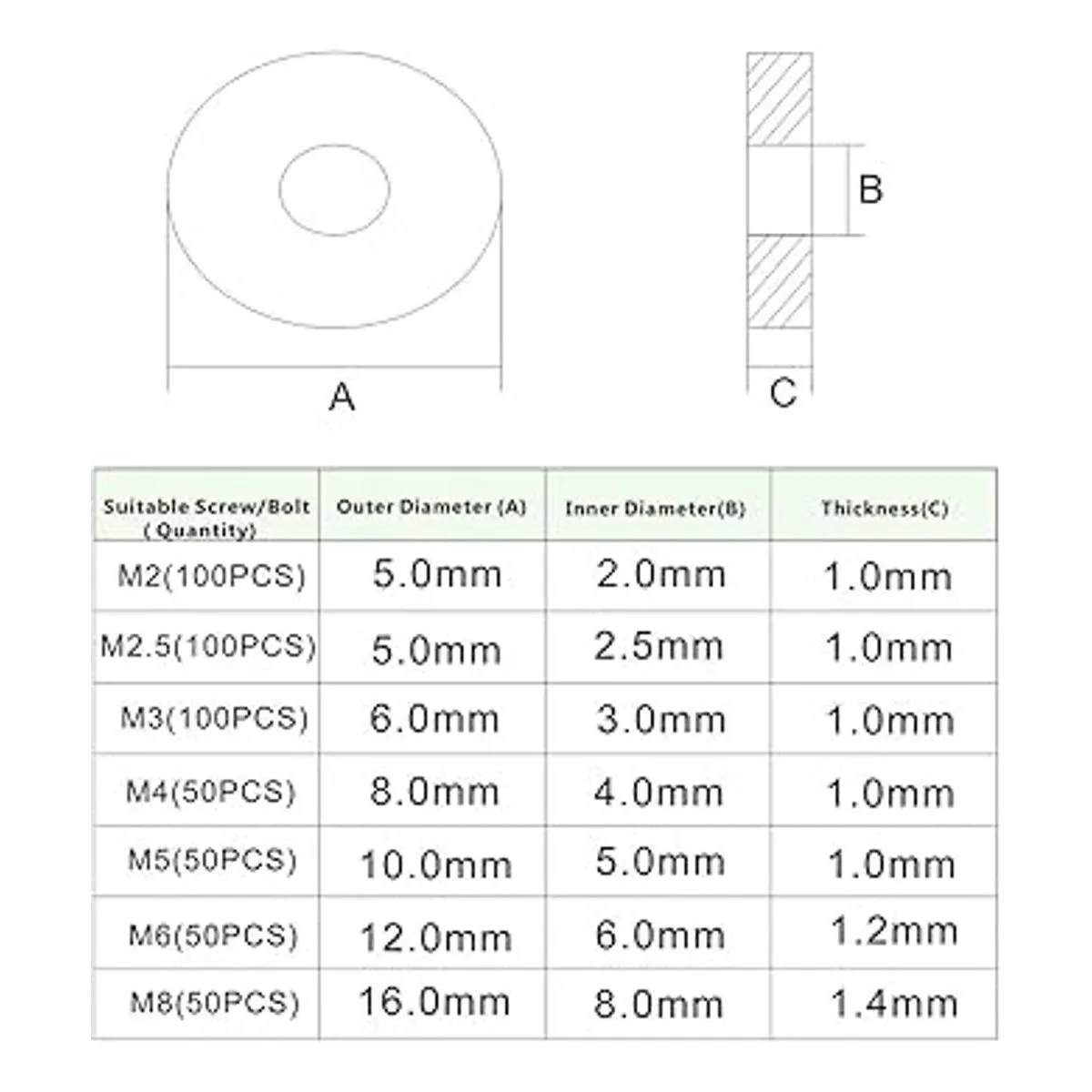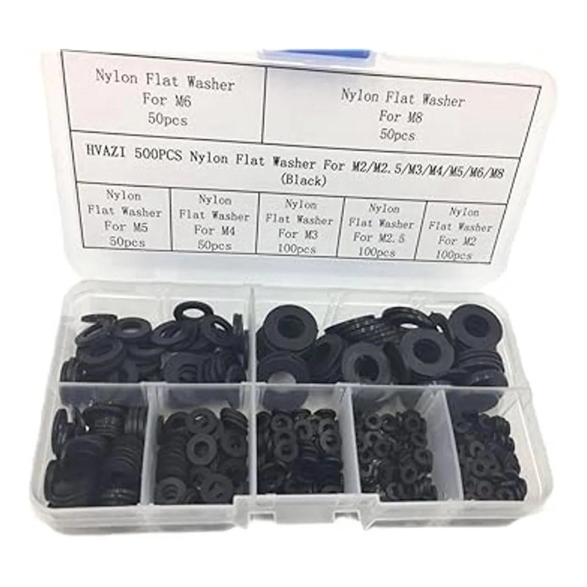 HVAZI 500 arandelas planas de nailon para tornillos M2 M2.5 M3 M4 M5 M6 M8 negro