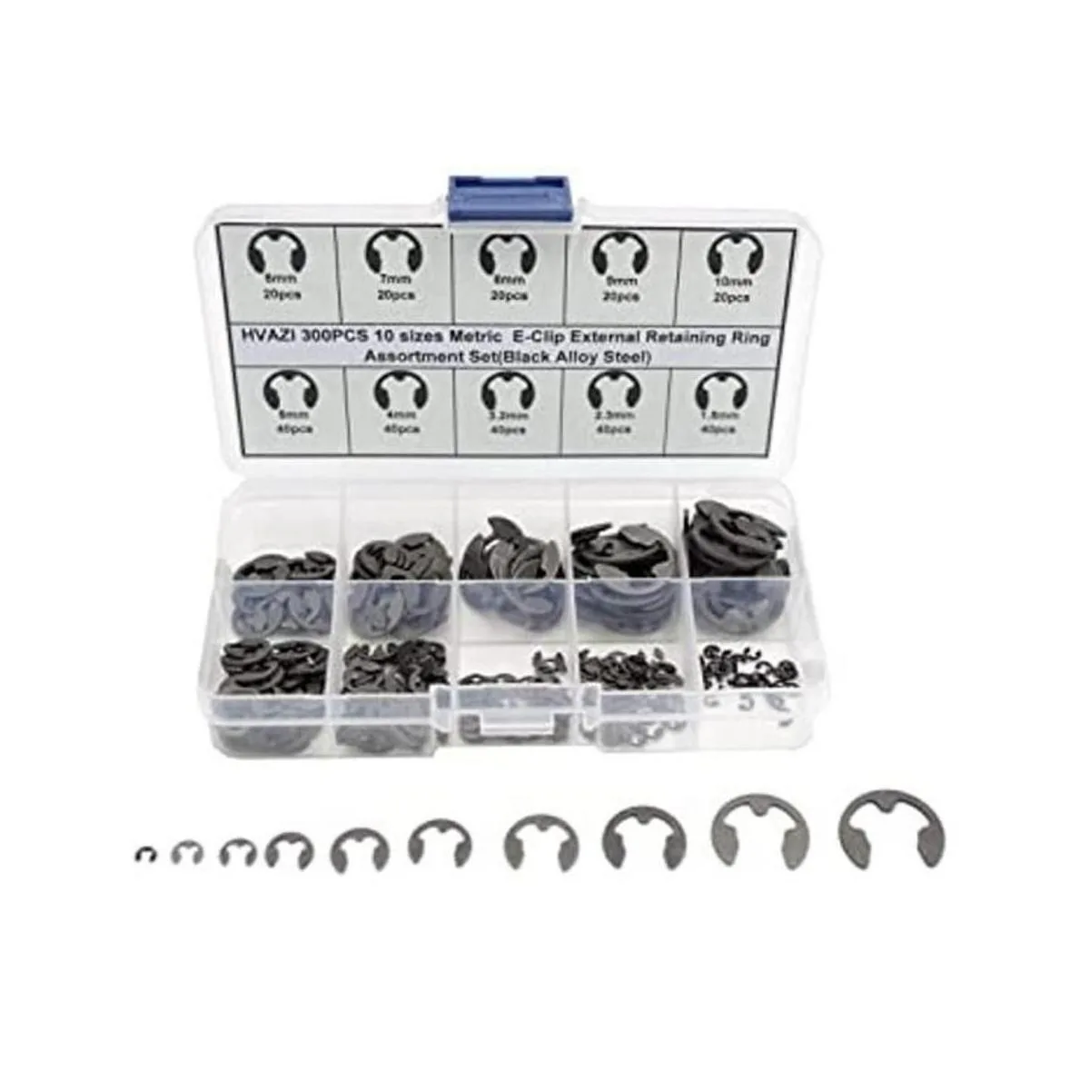 HVAZI Juego de 300 anillos de retención externos con clip electrónico aleación de acero negro