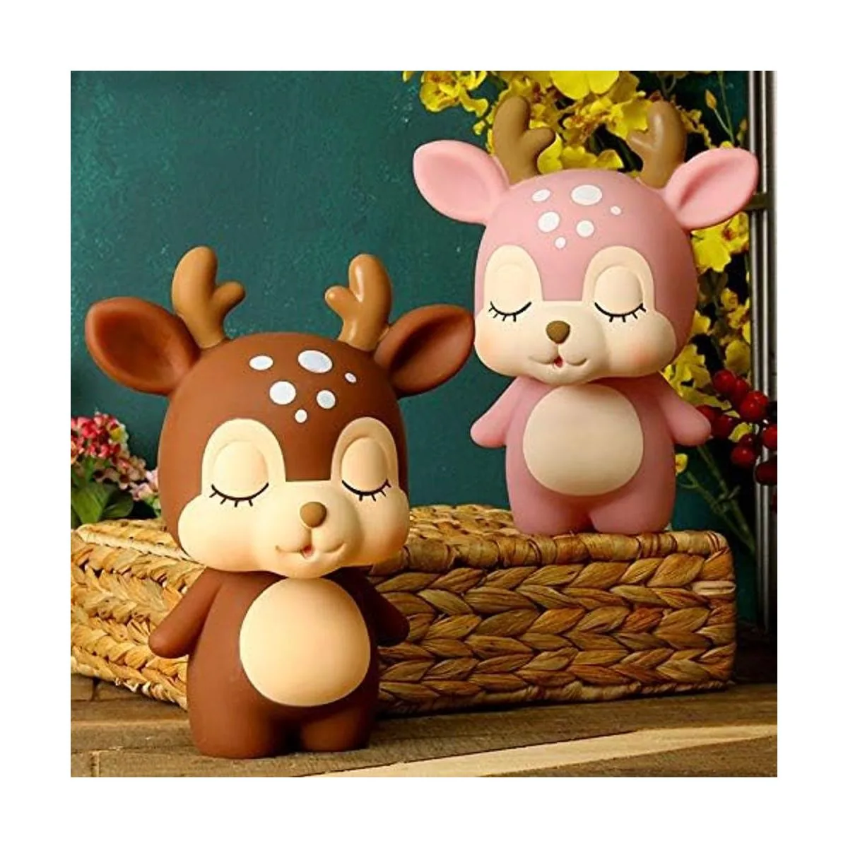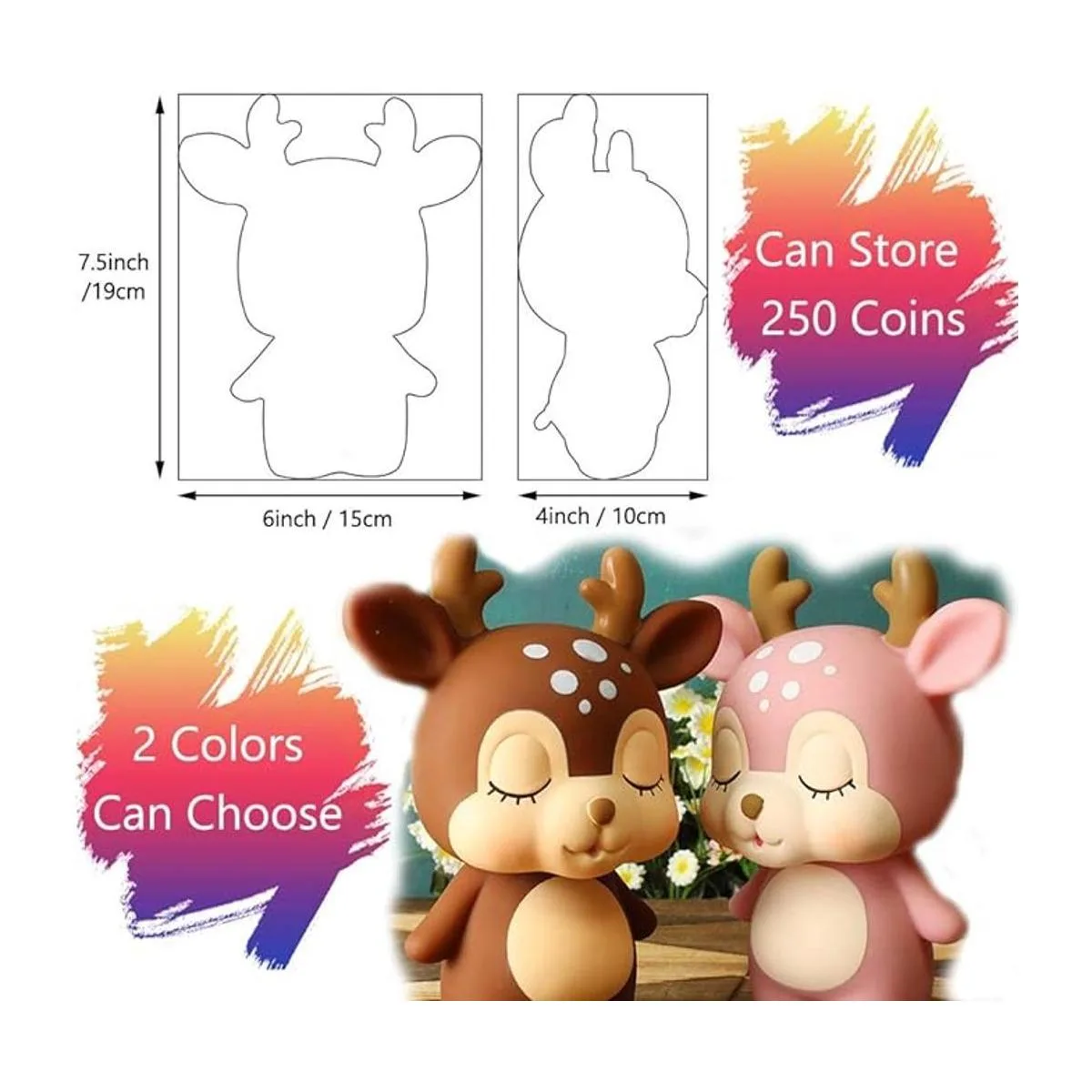 HW Lindo banco de dinero de ciervos rosa irrompible alcancía, caja de dinero para monedas, caja de dinero de plástico para niños y niñas